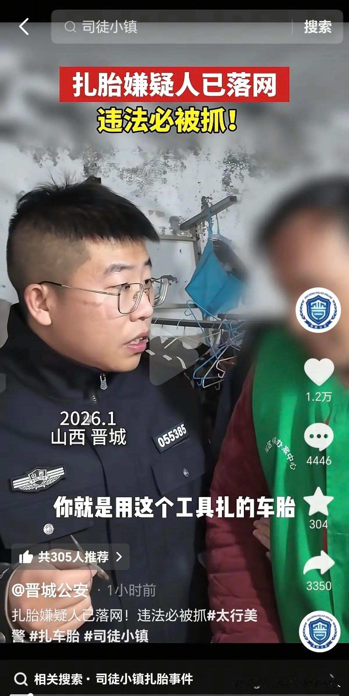 好消息!山西晋城司徒小镇恶意扎胎事件的嫌疑人终于落网了。看视频里,虽然脸部打了马赛克,但听声音像是个四五十岁的中年男子,手里拿着一把锈迹斑斑但看着很锋利的剪刀状工具。 到了最后关头,这人还在那狡辩,想以此减轻处罚。他对警察说自己当时喝了酒,记不清具体扎了多少,含糊其辞地说可能八九个,也可能十几个。 说实话,我也不信这只是单纯喝多了。要是真喝断片了,能那么精准地专挑轮胎侧面最薄弱的地方下手?这明显是有预谋的,因为真空胎侧面一旦受损基本没法补,只能报废。这事儿绝对不能就这么算了,必须深挖背后有没有人指使,是不是有什么黑恶势力在搞鬼。 这种行为太恶劣了,不仅损害了游客的财产安全,更抹黑了晋城的旅游形象。对于这种为了蝇头小利(或受利益集团指使)就破坏营商环境的害群之马,必须依法严惩,绝不能轻饶。只有让违法者付出惨痛代价,才能还游客一个公道,也能让其他想动歪心思的人不敢伸手。期待警方彻底查清背后的链条,还当地旅游市场一片净土。