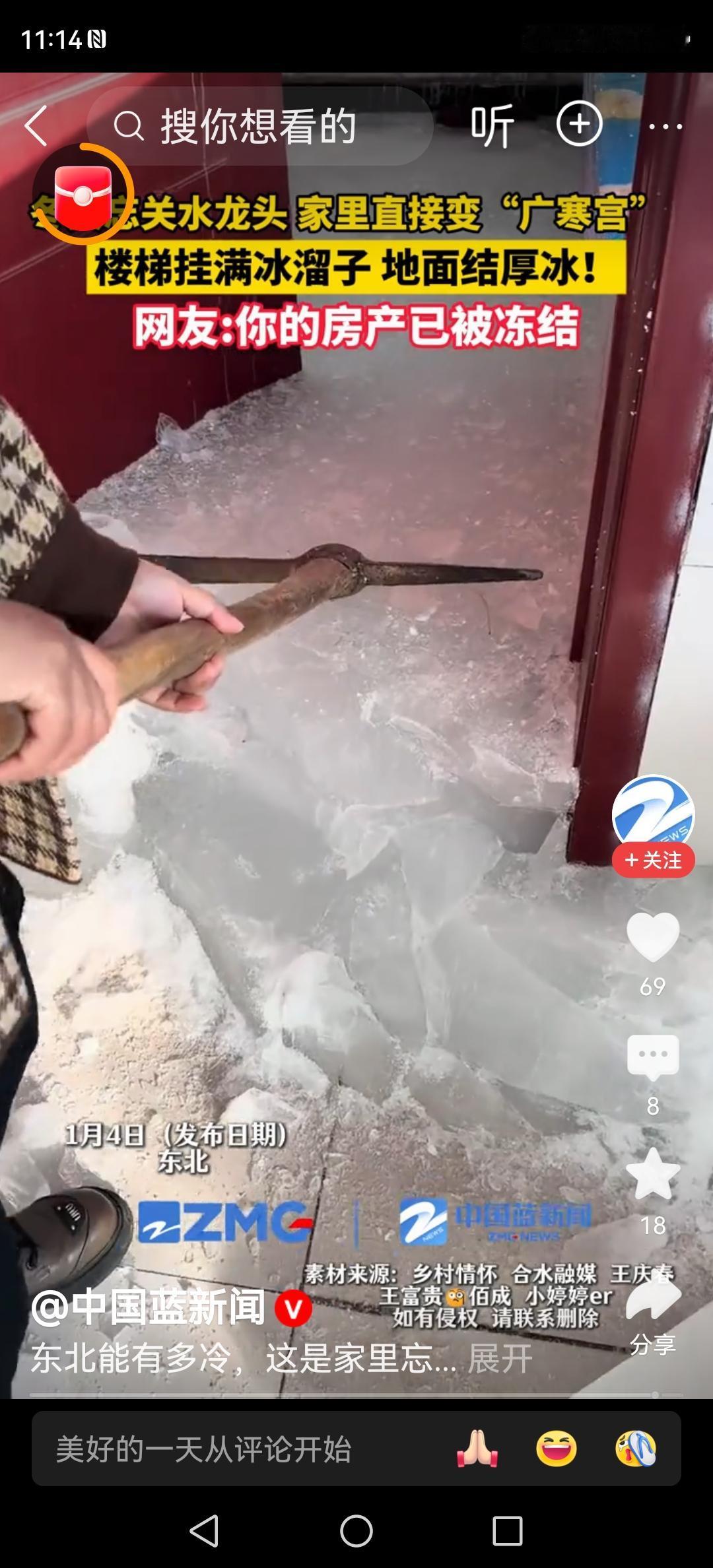 东北零下三十度的神奇生活日常,要是家里水龙头忘了关紧,过一晚就成了“冰雕现场”——厨房直接变身水晶宫殿,房檐下的冰溜子垂下来像门帘似的,地上结的冰能当天然溜冰场。有网友调侃:“这届冰箱下岗了,房产证直接冻成固定资产。”你在冬天遇到过哪些“冻感”瞬间?评论区聊聊! -search.byteimg.com/img/pgc-image/38fb906c2e444d1790457880fd6a079a~480x480.webp东北冰霜美景 东北生活习俗 东北生活图鉴 零下三十度体验 东北生活仪式 东北冬日美景 东北冬天氛围