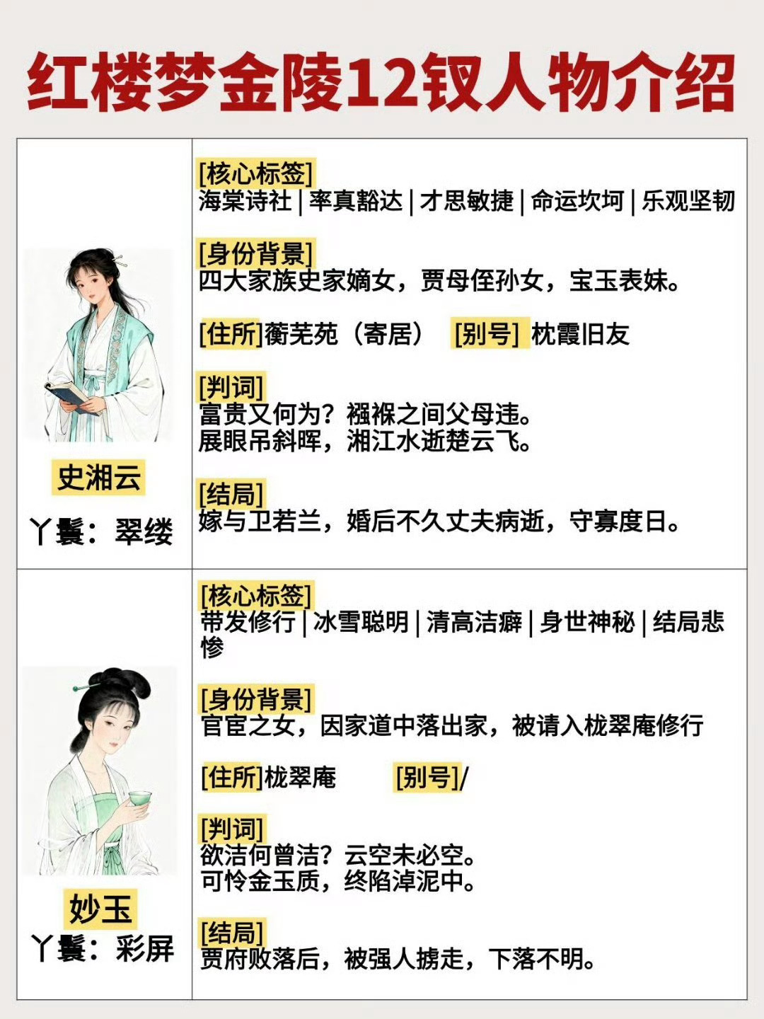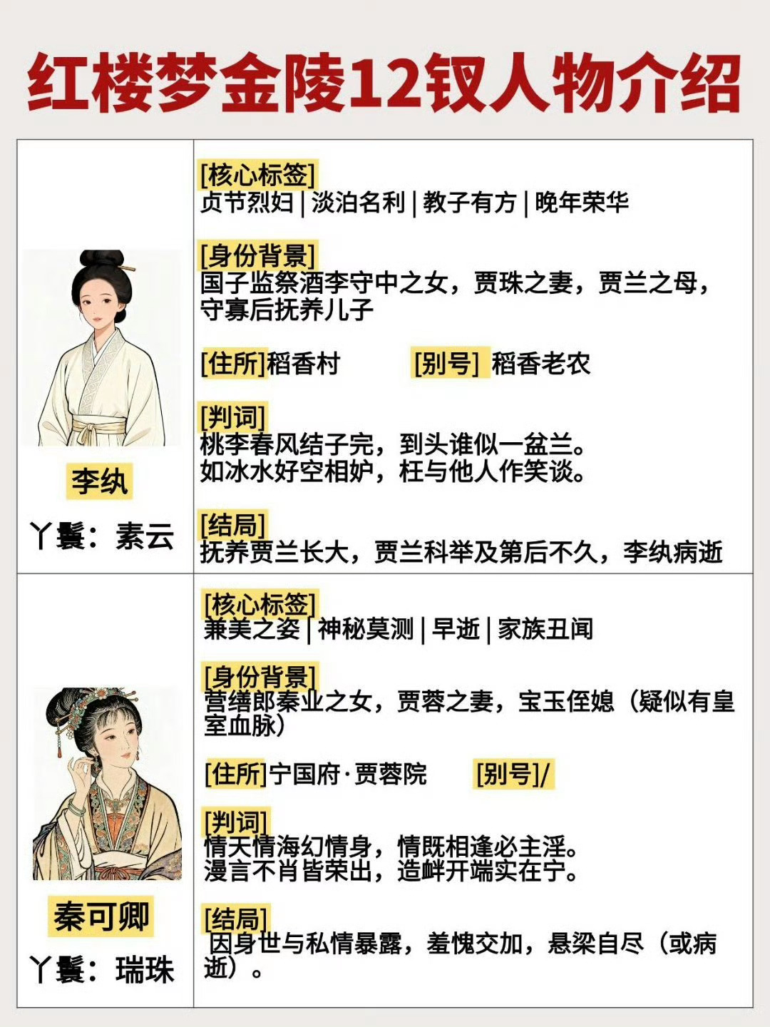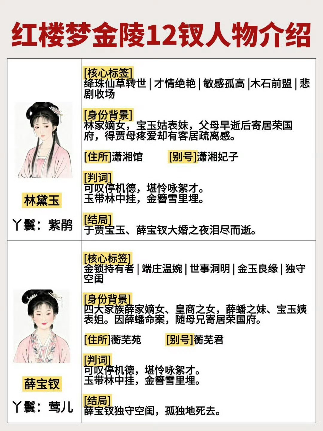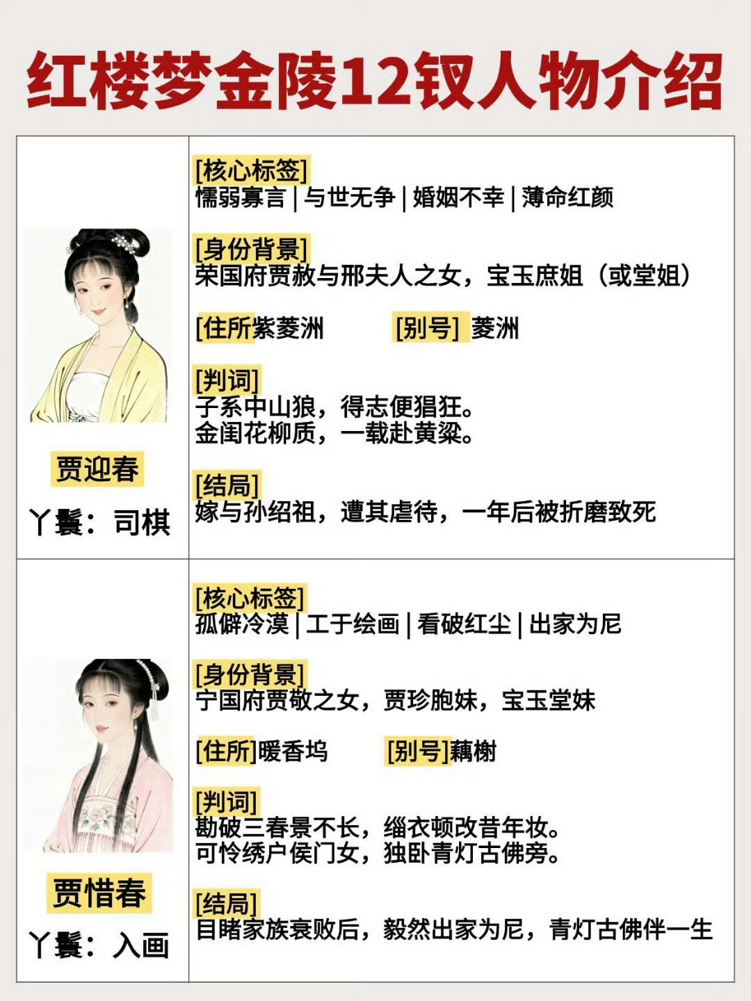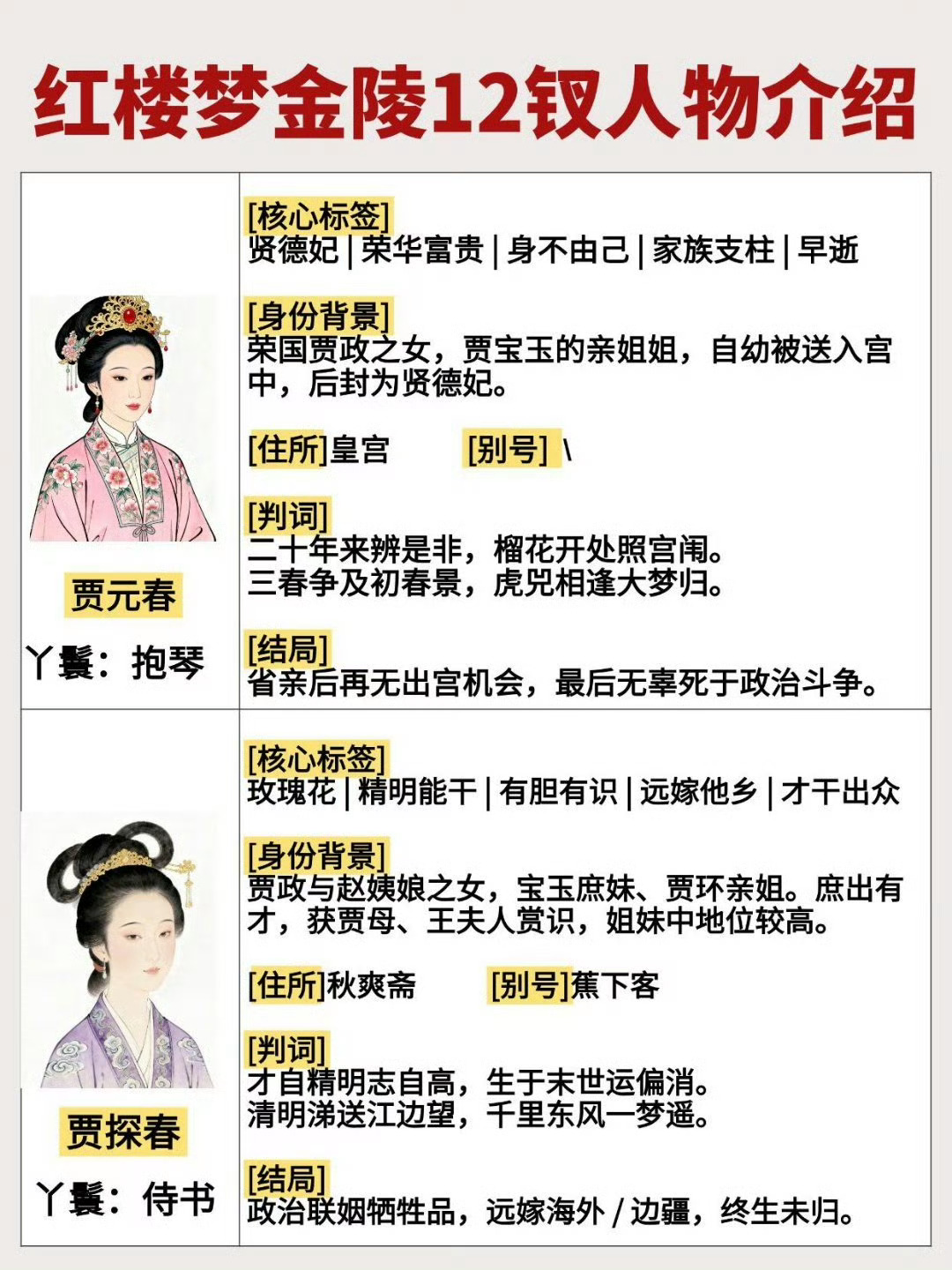 红楼梦金陵十二钗人物介绍,判词及结局!红楼梦古代文学生活手记