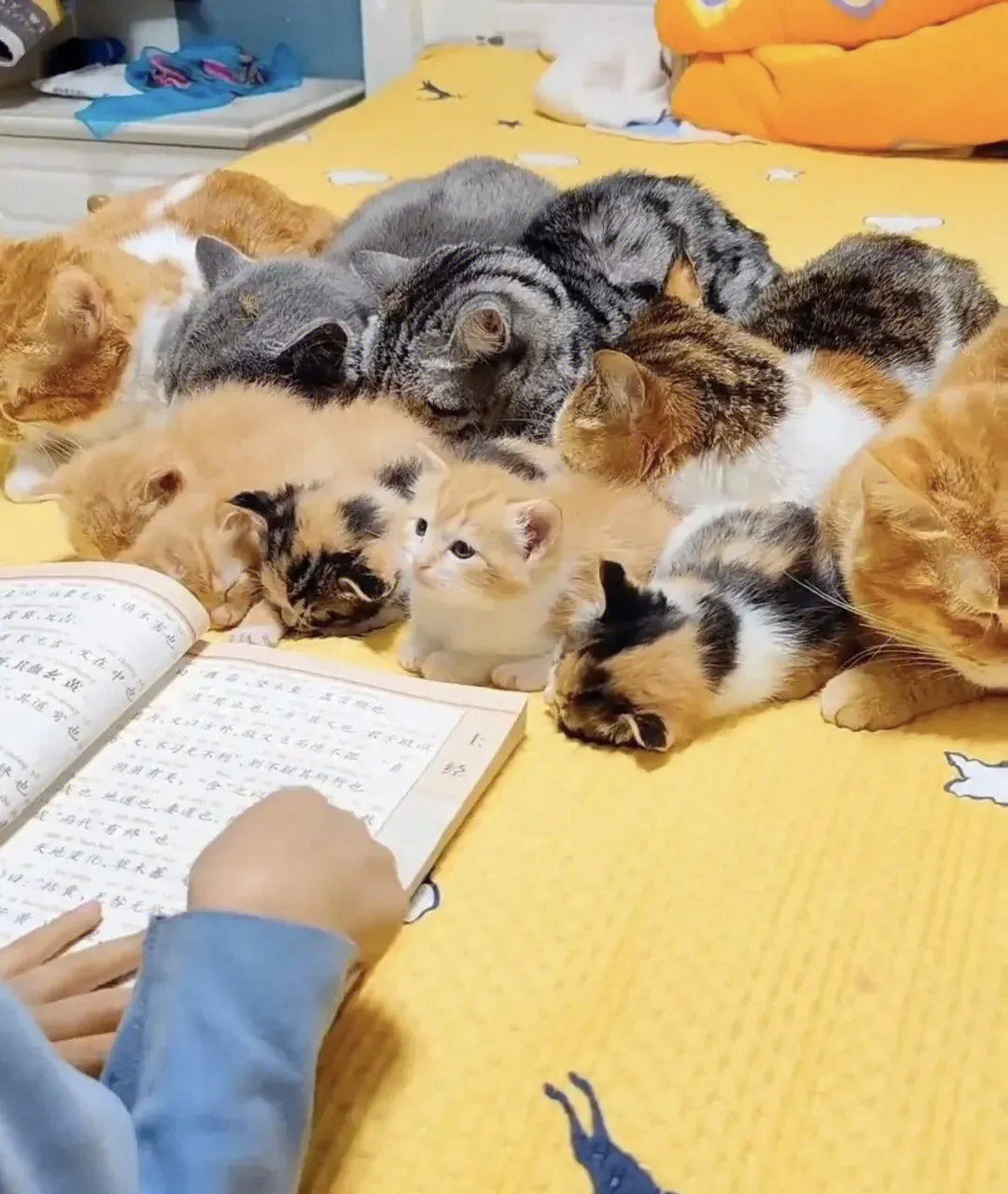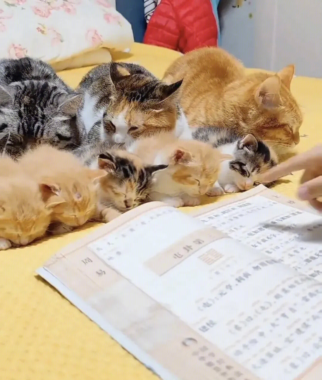 逛街时,看到一个桌子上躺了4只猫,不知道在干嘛!