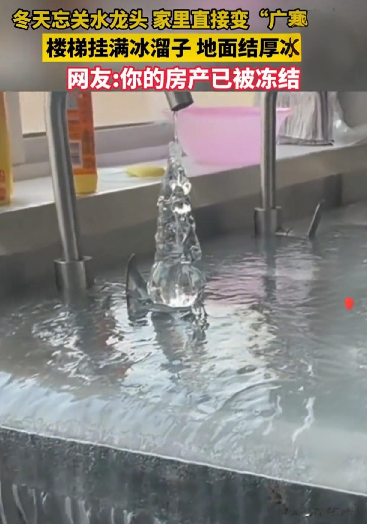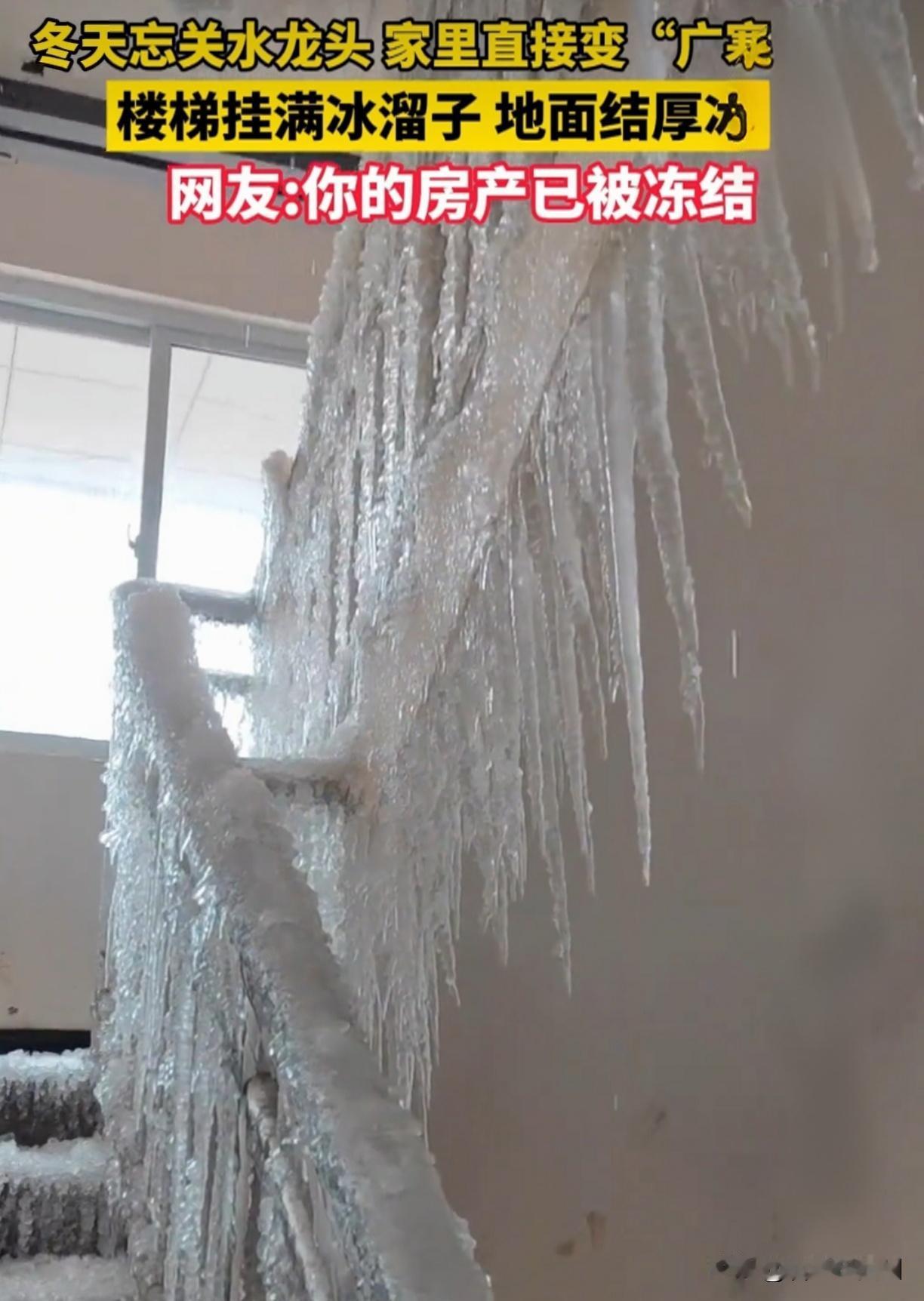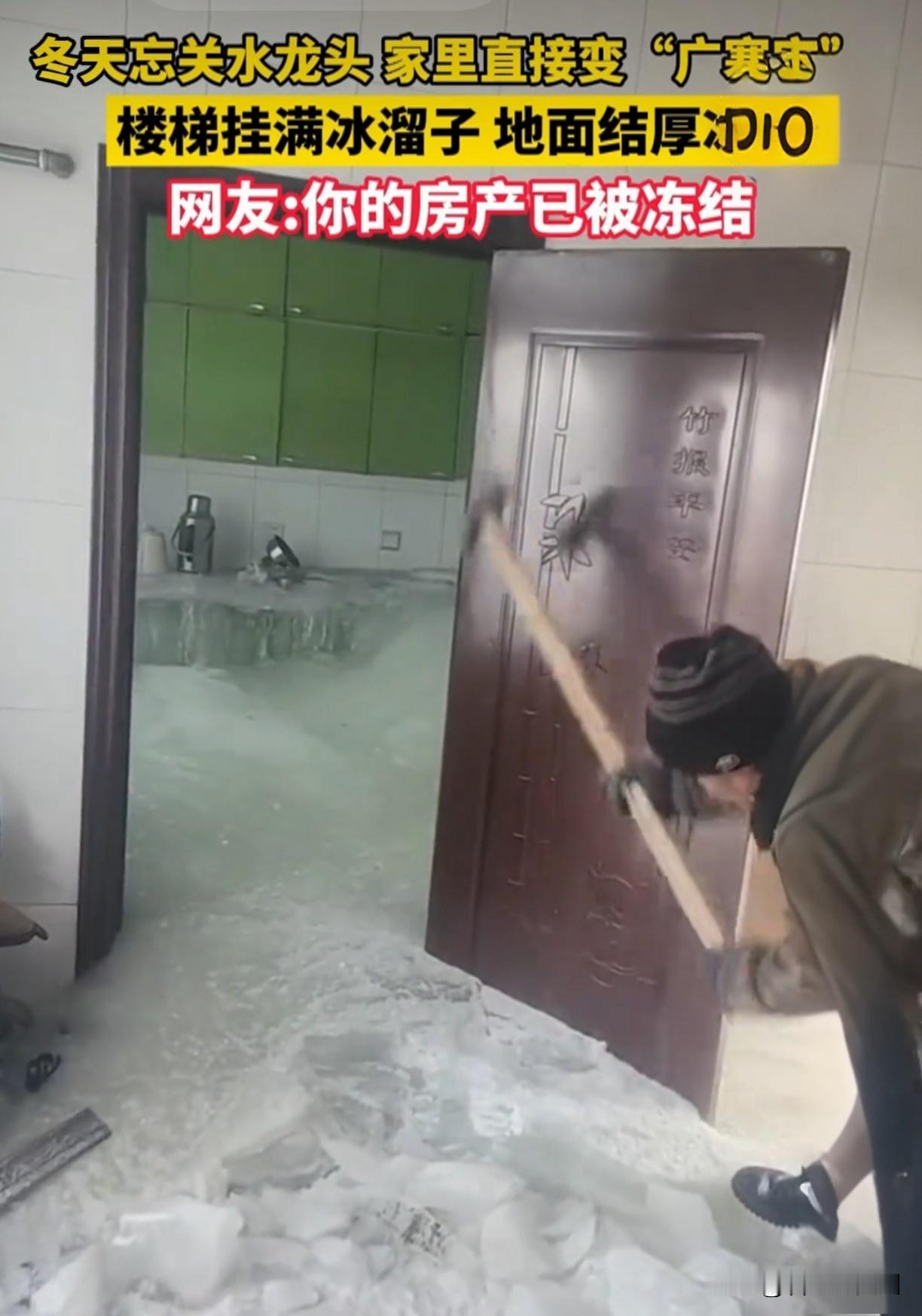 东北极寒狠活!水龙头忘关竟冻出“冰川客厅”,网友:我家变北极分极! 说出来你可能不信,在东北,冬天忘关水龙头,是真能给你冻出一座“冰山”来!刚才刷到一个视频,一网友回家推门直接傻眼——家里水龙头没关紧,水流漫了一地,结果全屋冻成了晶莹剔透的“冰洞”。沙发、茶几、电视柜,全裹在厚冰里,灯光一照,居然还有点梦幻…这哪是家啊,这分明是《冰雪奇缘》拍摄现场! 就这段“冻结固定资产”的名场面,短短几小时播放量冲上390万,评论区简直成了东北狠人冬季行为大赏: “这算啥,我家去年窗缝漏风,早上醒来发现窗帘冻直了,能当门板用!” “在哈尔滨,冬天晾衣服靠抢窗口,五分钟没收就成冰盔甲,掰都掰不动。” “我电动车放楼下忘了盖,早上车座冻出一层冰壳,骑上去感觉像驾驭冰川神兽…” 但这都只是东北极寒的“入门级体验”。真正的生活在这里的人,早就把这股冷转化成了一种带着幽默的生存艺术。 有人实验泼水成冰,滚烫的开水往空中一洒,瞬间化作冰雾烟花; 有人把冻梨往墙上一敲,梆梆响,比锤子还硬; 早上开车门得先“热身”——拿打火机燎一下锁孔,不然钥匙根本插不进去; 甚至有人说,外卖小哥送来的麻辣烫,放楼道里三分钟,表面直接结出冰辣油膜…… 你发现没?在这种极端天气里,东北人反而有种“冷中作乐”的潇洒。冻是真的冻,但吐槽归吐槽,生活照样热气腾腾。 也许,东北的冷早已不止是气候,更成了一种地域性格:再恶劣的环境,都能用一句“这都不是事儿”接住,再荒诞的场面,都能转化成段子一笑而过。 你说这是顽强,我说这更像一种温暖的反击——用热气腾腾的乐观,把天寒地冻活成生活背景板。 你在北方见过最“冻人”的瞬间是什么?欢迎在评论区晒晒你的家乡“冰”事,点赞最高的,送你一句东北御寒终极哲学:“哆嗦归哆嗦,可咱心里热乎着呢!” 南方人看不懂的北方狠活 冻到怀疑人生实录