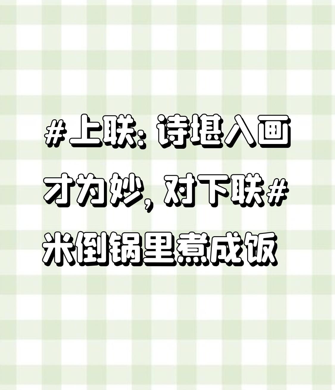 上联:诗堪入画才为妙,对下联米倒锅里煮成饭