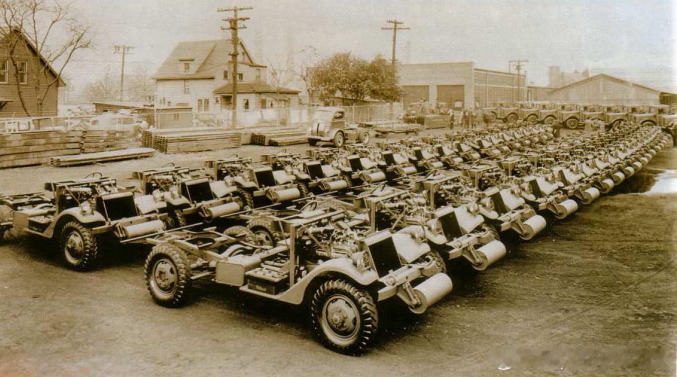 美军M3A1装甲侦察车装配线。该车1941年批量生产,标准配置是M2型12.7mm机枪(备弹600~750发)和M1919A4型7.62mm机枪(备弹8000发)军事历史全触达