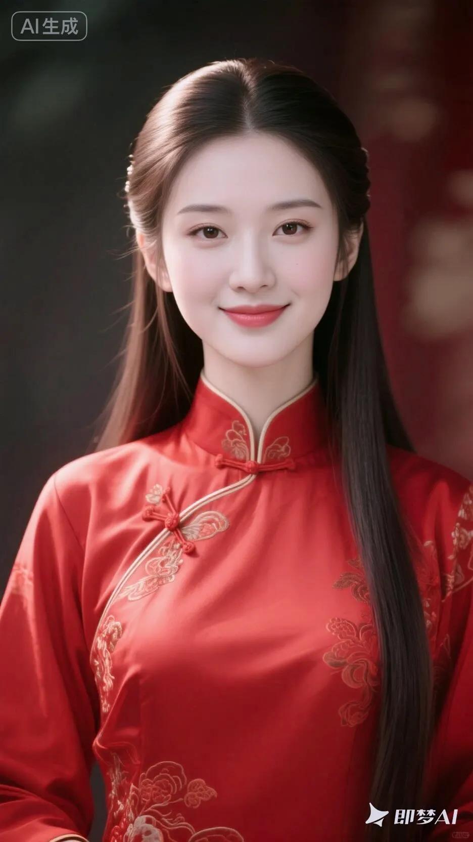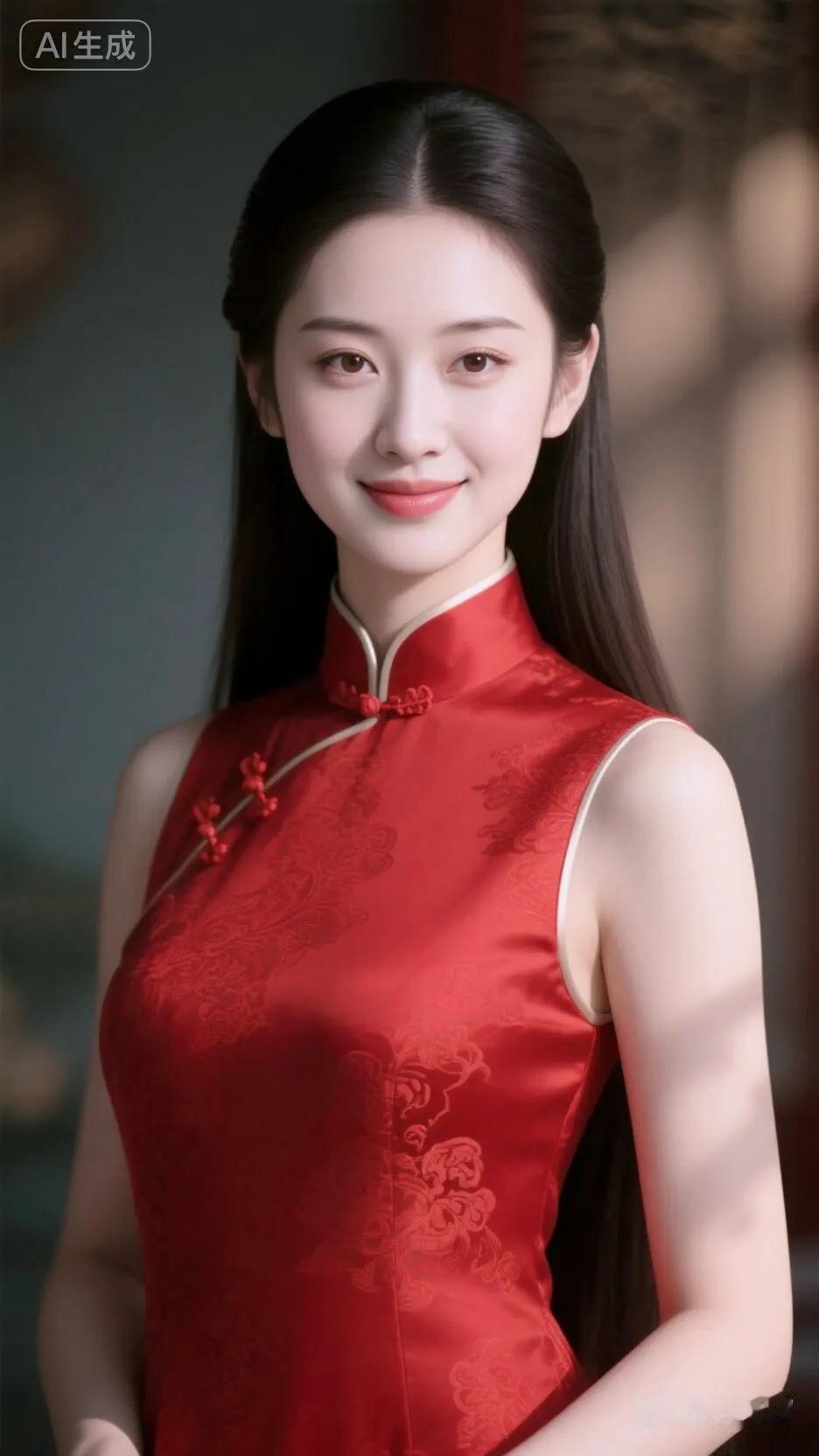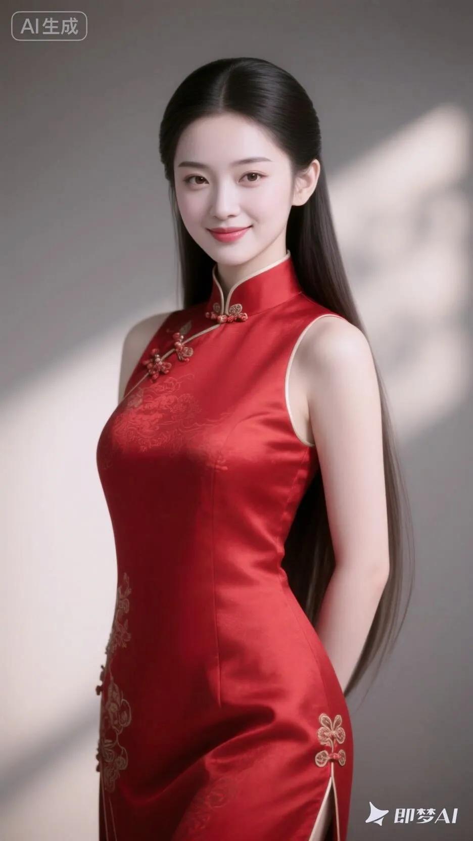 惊艳的东方美人,一袭红色旗袍,尽显古典优雅!