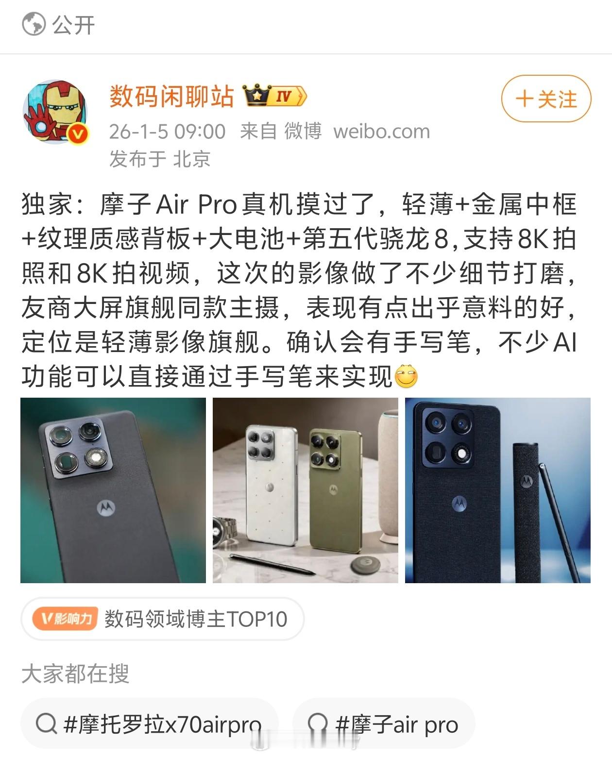 轻薄手机也要有影像旗舰了,联想moto X70 Air Pro旗舰主摄+支持双8K,平时喜欢拍vlog的话这一点就很友好,照片和视频素材可以按自己的想法裁剪,细节都能保留。还有大电池和第五代骁龙8,甚至还有了手写笔,再叠加上moto祖传的应用多开,果子和其他手机真的比不了,要是需要一台工作机,这X70 Air Pro确实最合适。