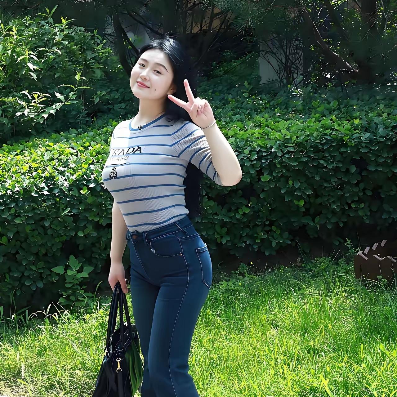 沁园春·晴园行 作者Ⅰ朱珠 晴苑风轻,绿蔓缠枝,松影覆阶。 看条纹衫薄,蓝纹凝素;牛仔裤挺,墨色裁阶。 手挽轻包,眉弯带笑,比个春心指尖开。 眸光转,恰晴光拂面,花气萦怀。 还见白衫凝雪,立树畔、身姿若柳裁。 有青丝垂瀑,眸光湛湛;纤腰微束,玉步轻抬。 叶底风来,鬓边香动,衬得容颜别样乖。 游园处,把流年小景,都入诗牌。 想人间美好,不过这般,晴日悠哉。 听莺啼树杪,虫鸣草际,心无俗事,意自悠哉。 拍影留痕,拈花浅笑,岁月温柔裹素怀。 归途里,带一身清翠,半袖风来。 又回眸、园中信步,裙裾轻摆,惹蝶徘徊。 任浮云舒卷,闲看天际,云边鸥去,岭上云来。 此际欢愉,千金不换,只惜春光莫负差。