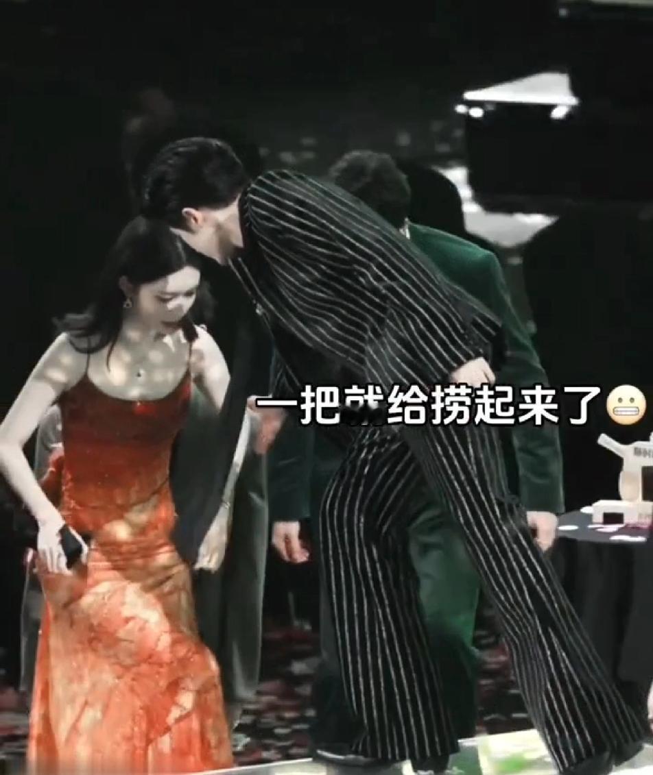 感觉檀健次会把孟子义的手腕给掐红!上舞台前,檀健次提前抻出头探路,确保路况安全,孟姐可以顺利通过,起步之前就把孟姐的手腕紧紧捏在手里,起步之后,直接把孟姐的手臂紧紧挎在自己的手臂里,主打一个一荣俱荣一损俱损,要不不摔,要不一起摔,总之孟姐没站定之前,檀健次就一直把孟姐的手臂死死掐在手里!孟子义