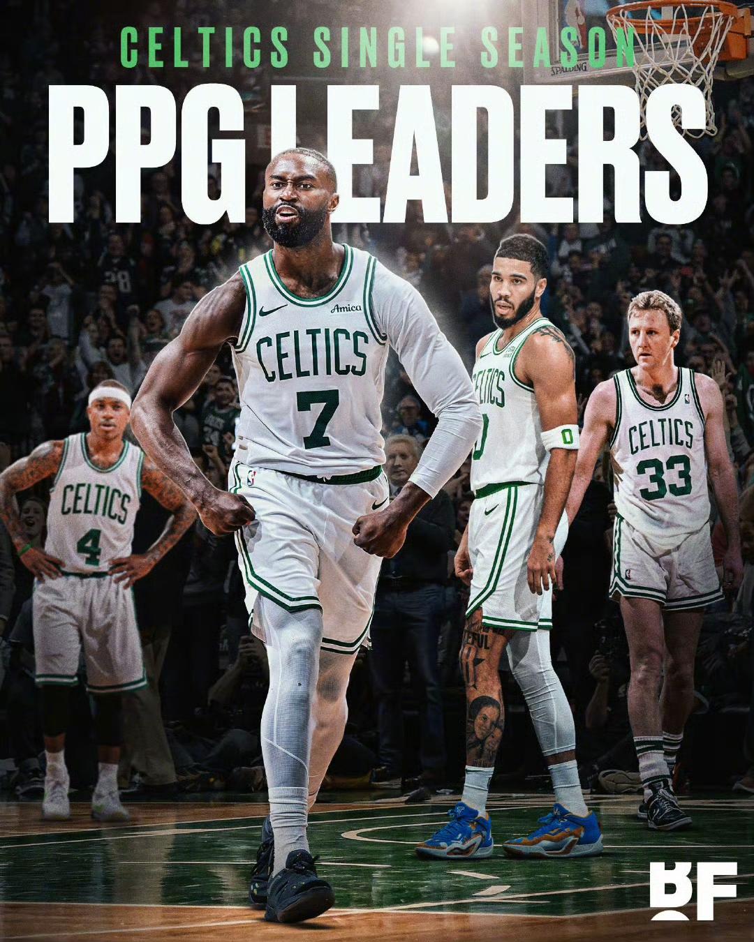 现在可以吹杰伦布朗,他才是凯尔特老大! 本赛季场均30.9分,超越塔图姆,拉里伯德,小托马斯的最高得分,凯尔特人队史第一。 之前他和塔图姆双星闪耀,如今看来杰伦布朗是一哥![大金牙]