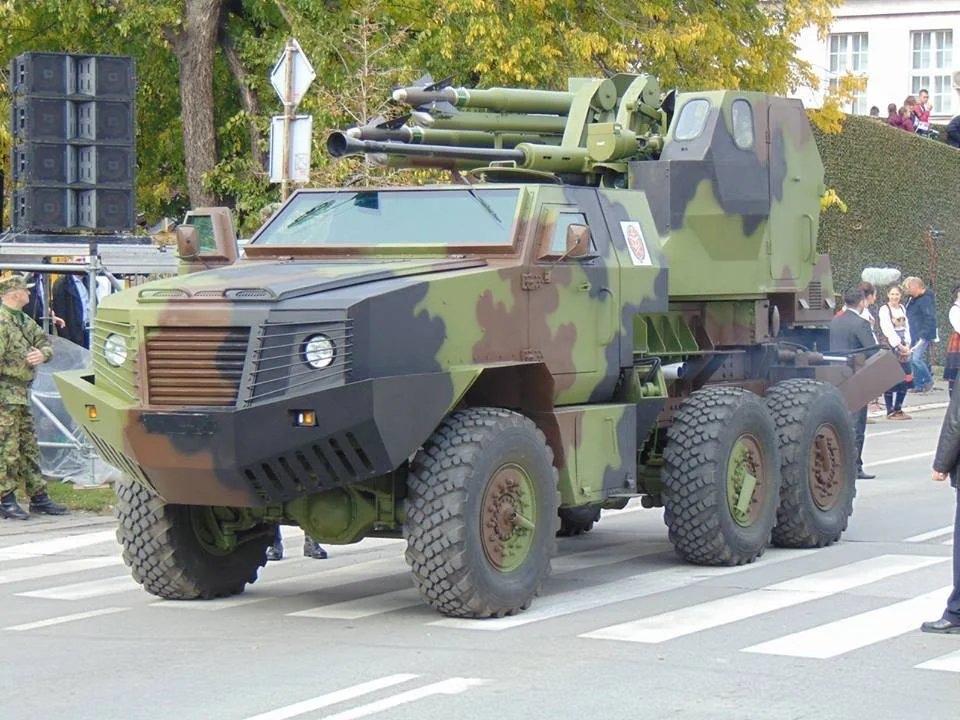 塞尔维亚的PASARS-16 SPAAG弹炮防御车,使用40毫米L/70 Bofors炮弹和2个RLN-1C(改装的R-13导弹)、进行短程点对点防御。