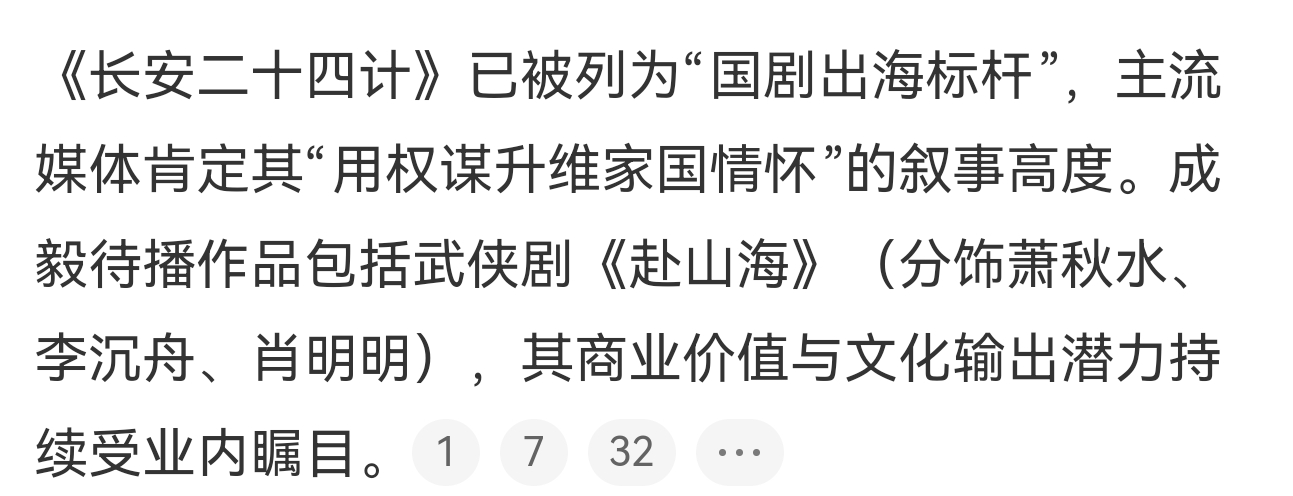 成毅长安二十四计智搜的总结很到位:全球影响力与商业突破,创造国内招商神话,角色与艺术价值的突破,中式美学出圈,国剧出海标杆!成毅作品必属精品!