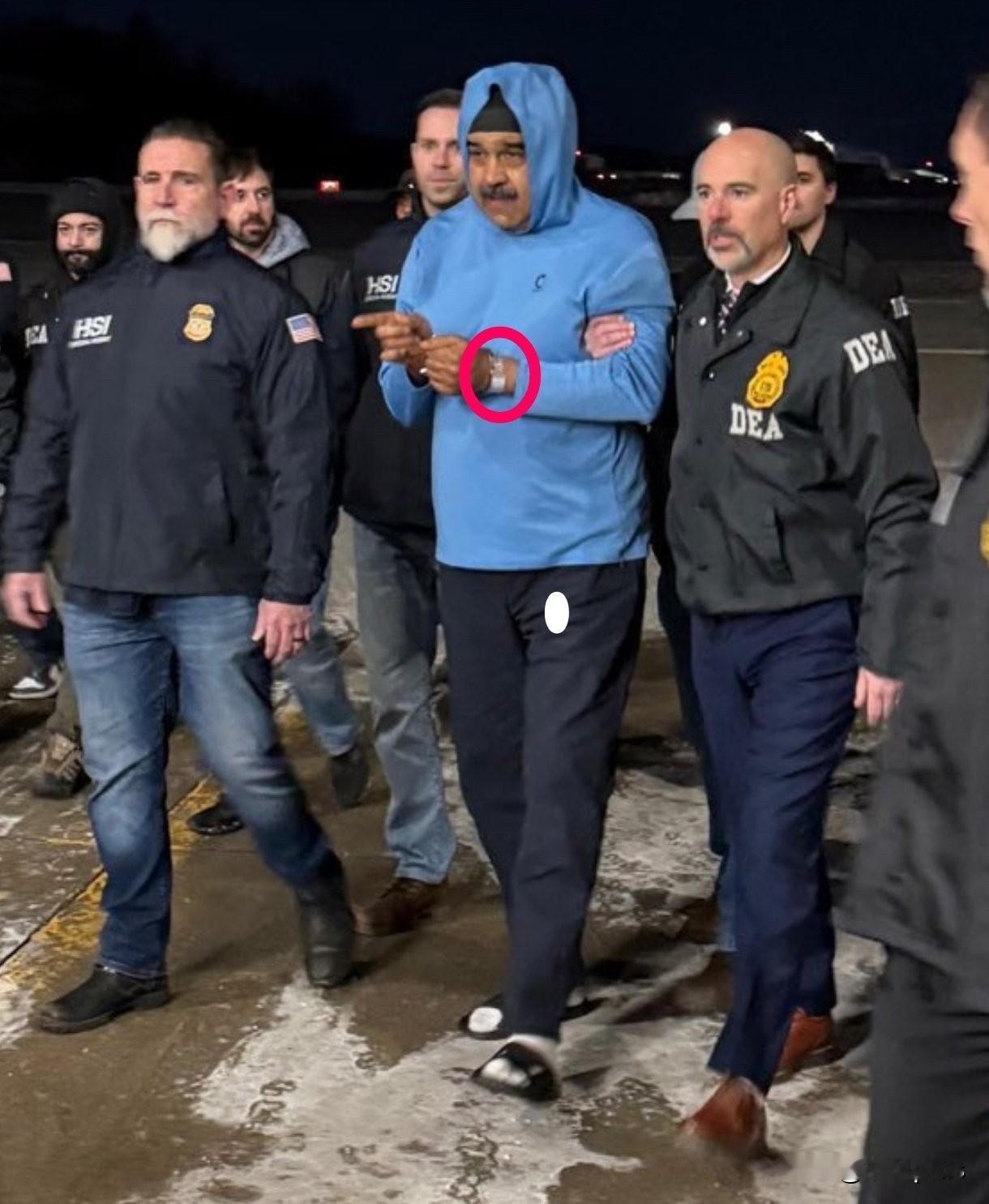 美国人押送马杜罗的画面,一个有意思的事情是美国工作人员都穿着机构logo的夹克。左边是HSI,也就是美国国土安全调查局,这件夹克售价61美元,但是仅在职HSI工作人员可以购买,需要验明身份。HSI也算是警察,所以相当严格。 右边穿的是DEA工作服,也就是美国缉毒局。美国缉毒局的夹克没有在线销售,但有很多仿制的衣服在网上卖,但都不像真的款式。 HSI与DEA都是美国联邦执法人员,专业名词叫特工。别看他们穿着夹克挺随意,但这是他们工作制服,上面印着机构Logo,即统一了着装,提高辨识度,又保持衣服活动方便,下身穿牛仔裤都可以。