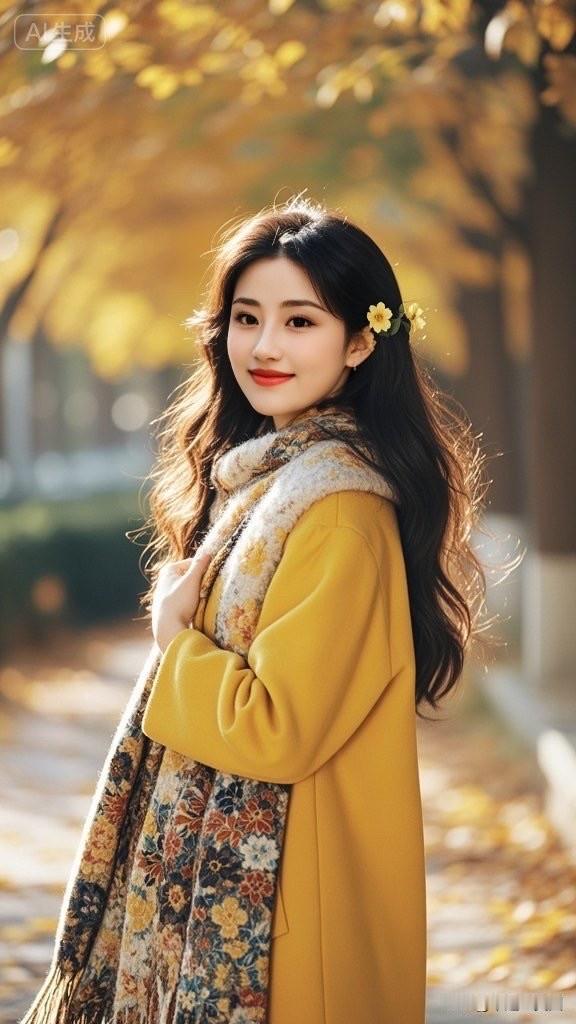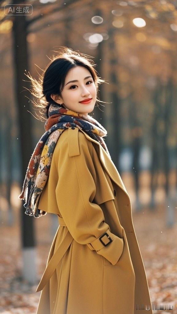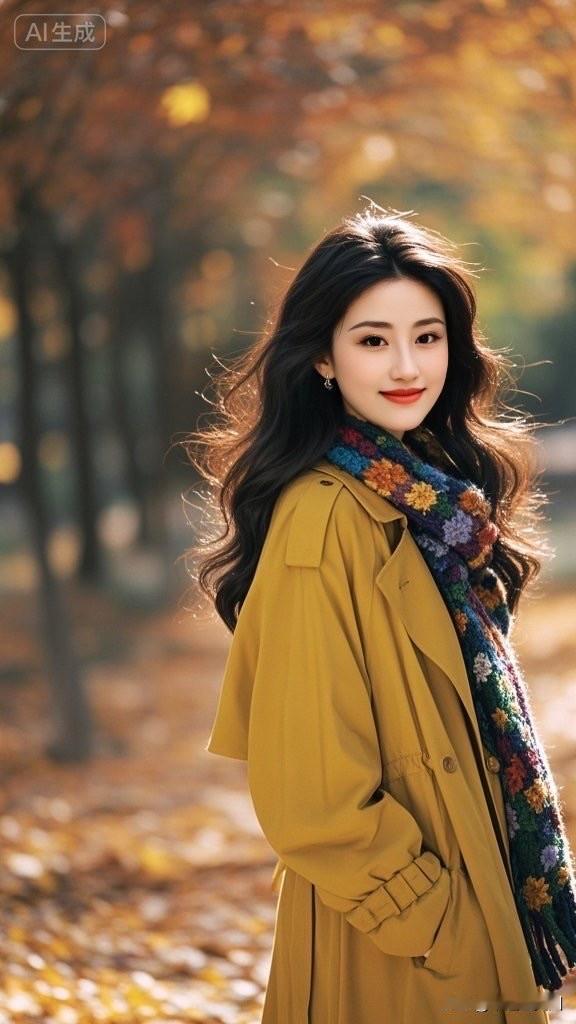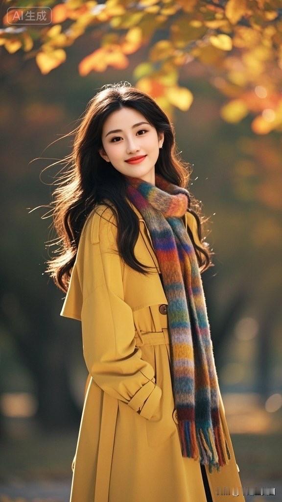 秋日暖阳下,温柔少女与多彩围巾的浪漫邂逅🍂🌟