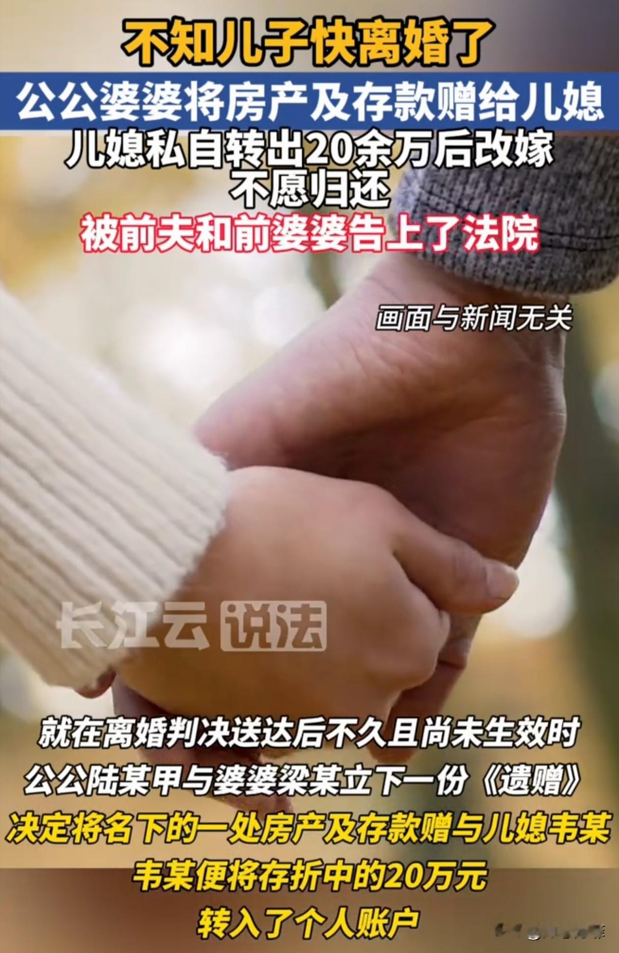 广西,两位老人不知道儿子快离婚了,把20万元赠给了儿媳妇,本希望她能照顾好家庭,