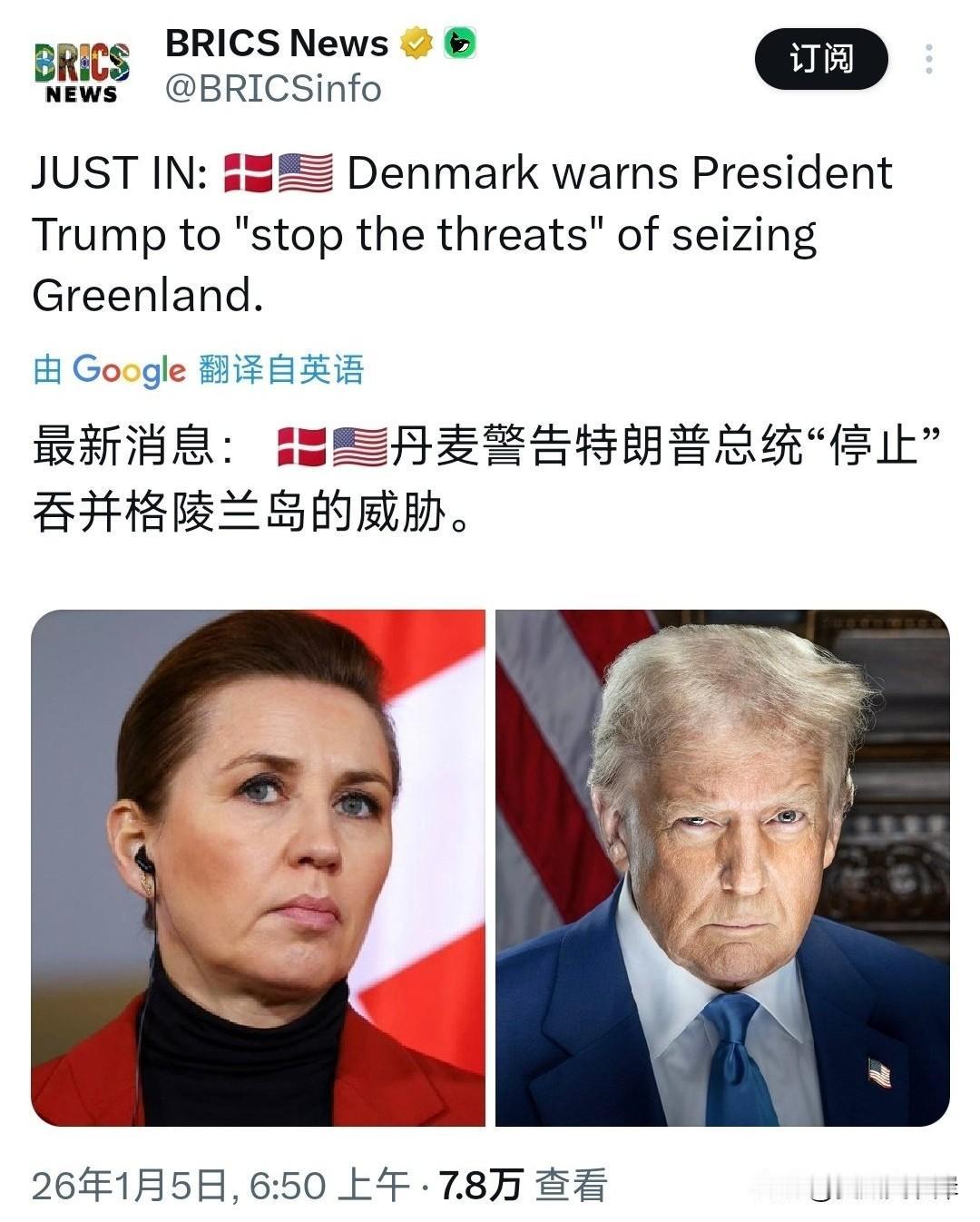 丹麦警告川普“停止”吞并格陵兰岛的威胁。