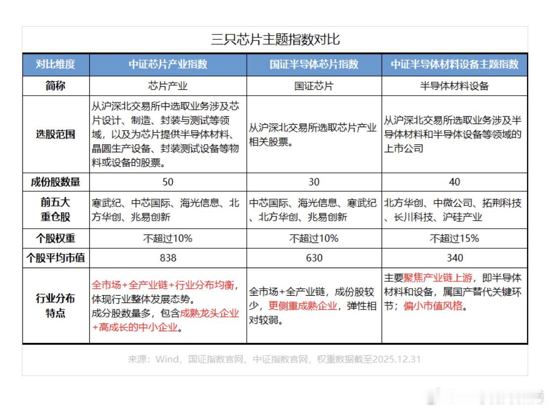 “国家队”再度加码,芯片的机会如何把握元旦期间,港股芯片股迎来强势爆发,核心催化因素是港交所披露的一则芯片产业重大消息,国家大基金在中芯国际H股的持股比例于2025年12月29日从4.79%升至9.25%,持股比例接近翻倍。这一动作绝非单纯的资本布局,而是通过对芯片制造环节进行精准“输血”,用真金白银支持扩产,向市场明确释放出对芯片产业支持持续加码的信号。这也为我们在新一年的布局指明方向。芯片产业值得关注的逻辑不止于此,其还同时受益于AI算力爆发和国产替代深化两大浪潮。比如AI驱动的算力基础设施投资浪潮已进入加速阶段,带动芯片产业周期迎来向上拐点。作为行业“晴雨表”的存储芯片价格早在2025年3季度就开始持续回升,部分工厂订单排期达3个月,周期反转信号明确。2026年1月1日生效的《全球半导体供应链安全框架协议》补充条款,一定程度上缓解了外部设备封锁压力,为国内芯片企业发展扫清部分障碍。前些天,国内互联网电商巨头采购国产芯片,总额或超400亿,用行动表现出对国内芯片的认可。众多利好加持之下,芯片应是节后需要高度重视的一个领域。目前市场上主流的芯片主题指数有三只:中证芯片产业、国证半导体芯片和中证半导体材料设备主题指数。(具体区别见上表)其中,中证芯片产业指数讲求的特点是“全市场+全产业链+分布均衡”。从沪深北交易所中选股,涉及上游(材料和设备等)、中游(芯片设计、制造等)、下游应用等领域的企业,同时包含成熟龙头企业和高成长中小企业。该指数中长期收益较好,自2019年至今收益率达到439.33%,跑赢了其他两只指数。(来源:Wind,截至2025.12.31)国证半导体芯片指数也属于芯片全产业链指数,其更侧重成熟企业,弹性相对较弱。中证半导体材料设备主题指数聚焦产业链上游,属于国产替代的关键环节,偏小市值风格,但当芯片半导体内部出现分化时,有可能踏空行情。简单来说,想投芯片“整条链”,又希望能有不错的弹性,中证芯片产业指数是不错的选择,对应的产品有易方达中证芯片产业ETF(516350)及易方达芯片ETF联接基金(A类:018411;C类:018412),费率低且跟踪指数效果较好。A股春季行情正在徐徐展开,AI行业有望继续巩固市场主线地位。作为AI算力的基石,芯片板块在春季行情中的配置价值愈发凸显。
