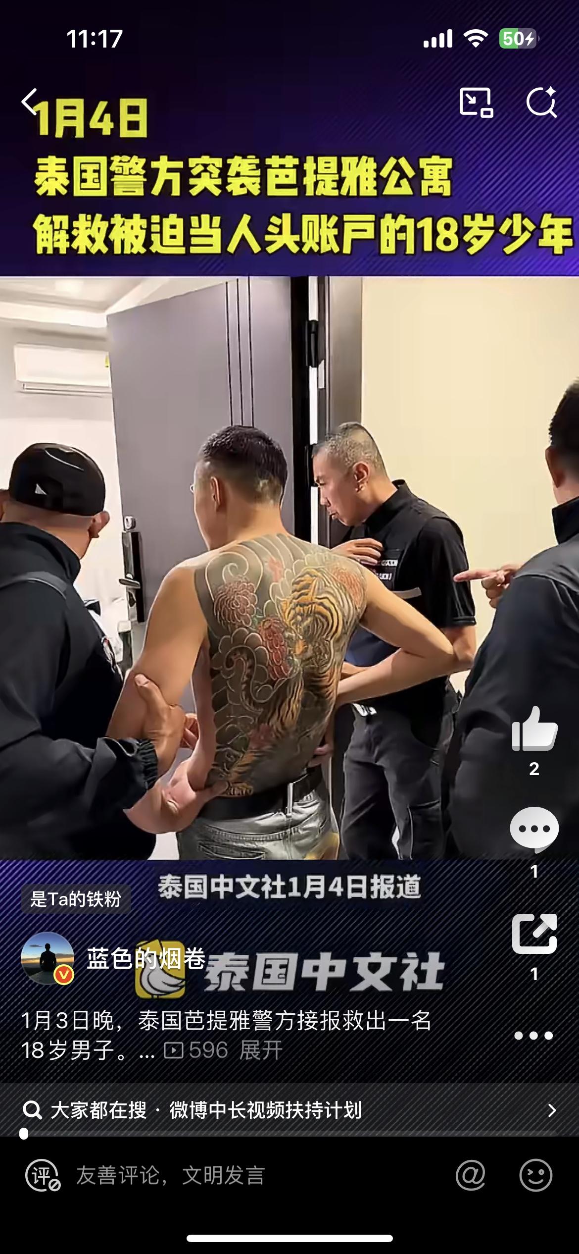 一中国小伙泰国找工作被27岁中国男子骗入诈骗窝点,沦为电诈洗钱工具人。这个小伙在脸书上看到泰国某公司招聘的信息,前往泰国芭堤雅某公寓面试,迅疾被27岁中国男子控制,给他开设账户、电子钱包,再利用他的账户进行洗钱,短时间内流水就达到40万泰铢。小伙发现被骗,想逃跑,被27岁男子殴打,最终还是摆脱男子纠缠,向公寓管理方求救。泰国警方马上行动,抓到了这个后背满是纹身的中国男子。泰国打诈 曼谷诈骗