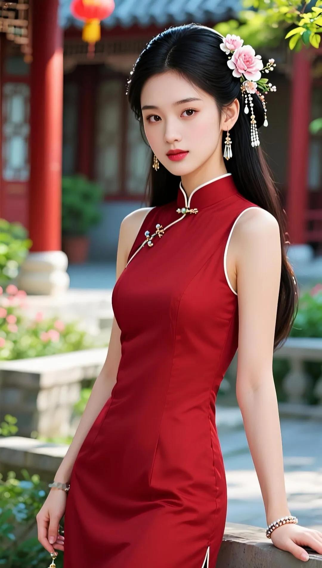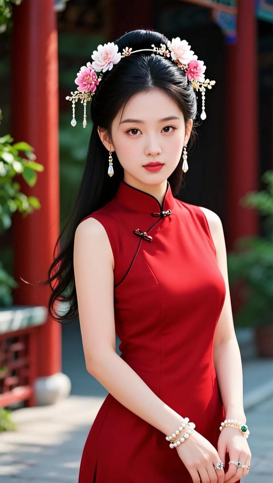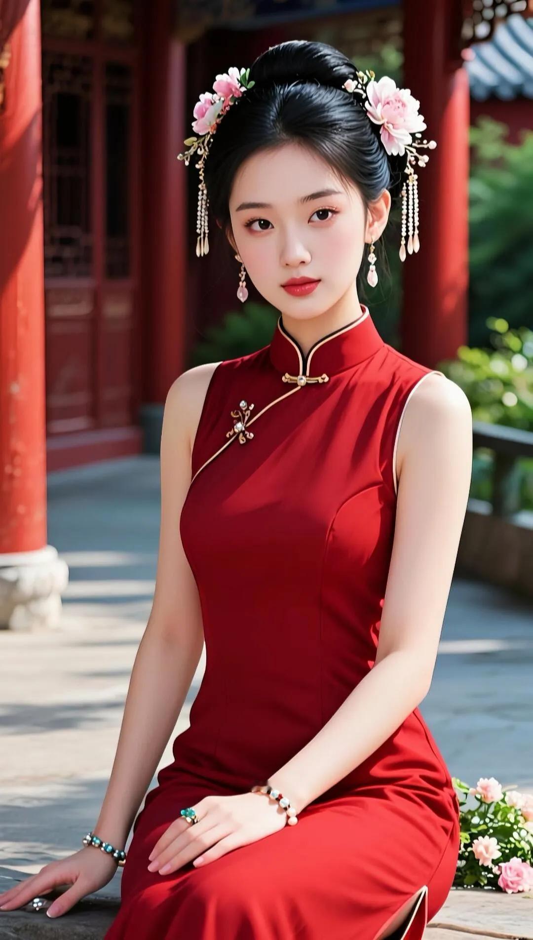 优雅旗袍,红妆惊艳,花枝招展,古典韵味