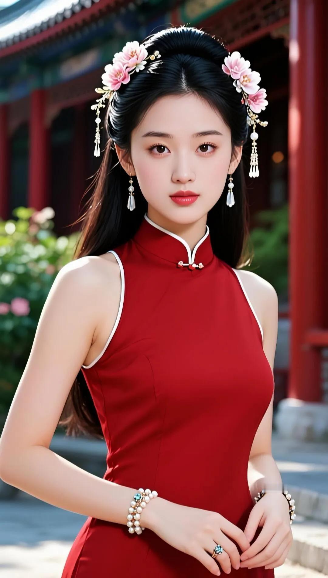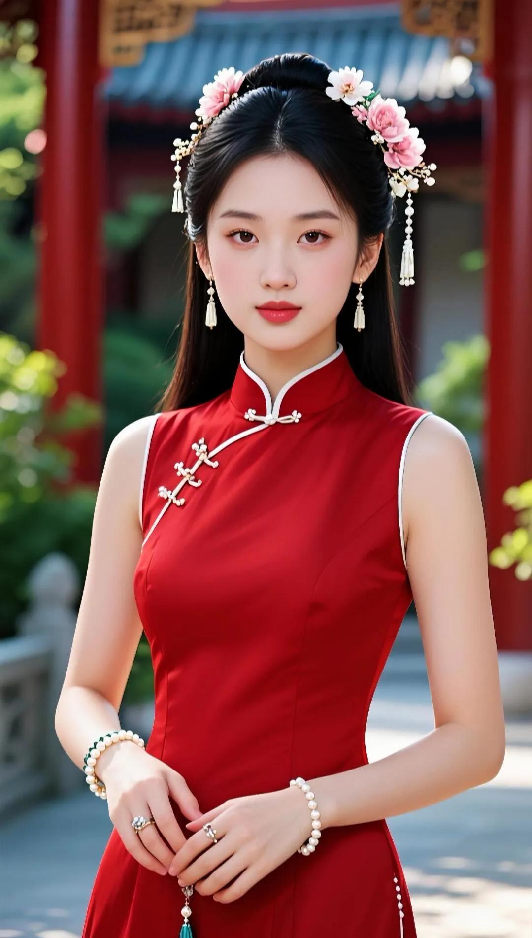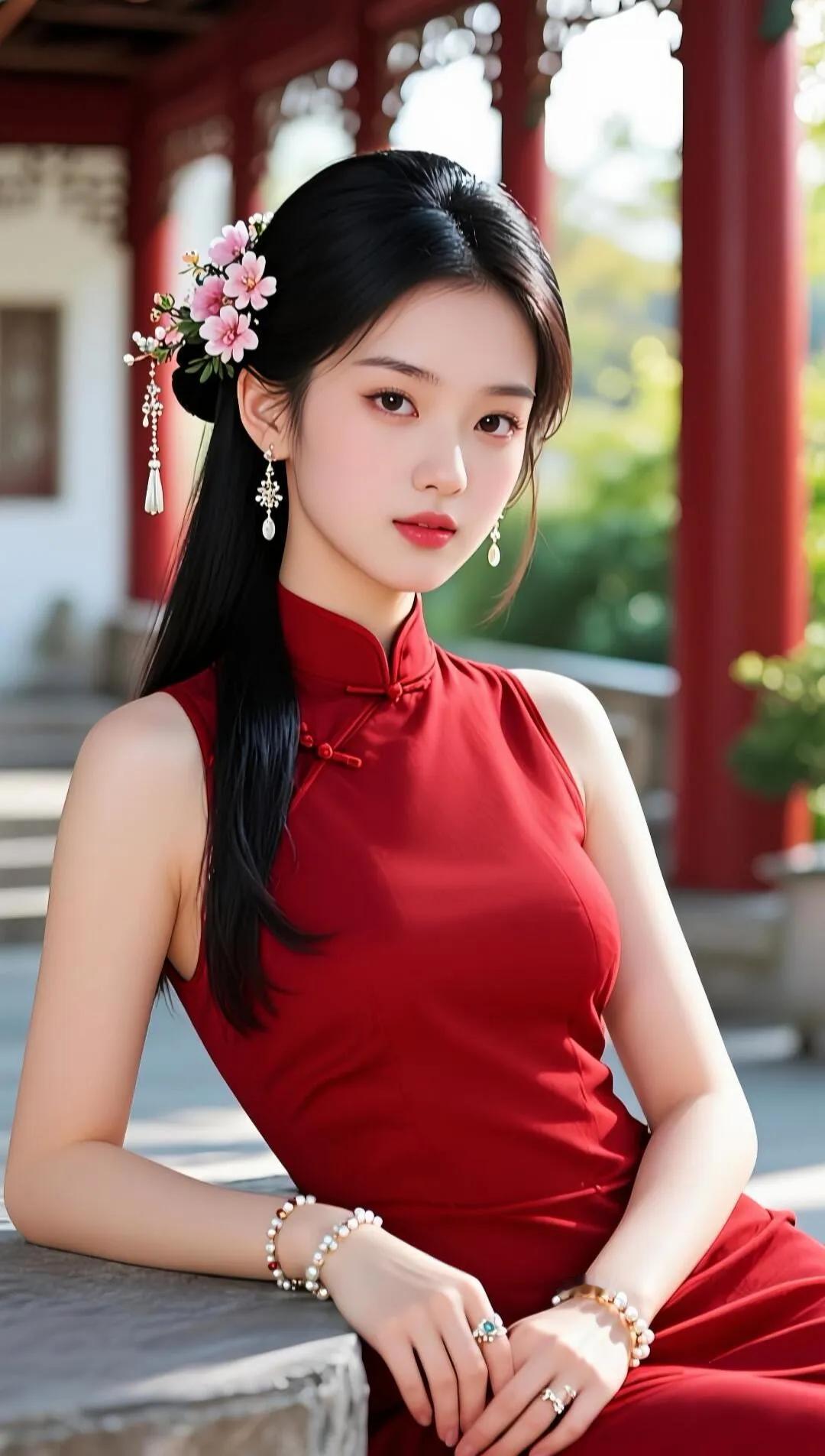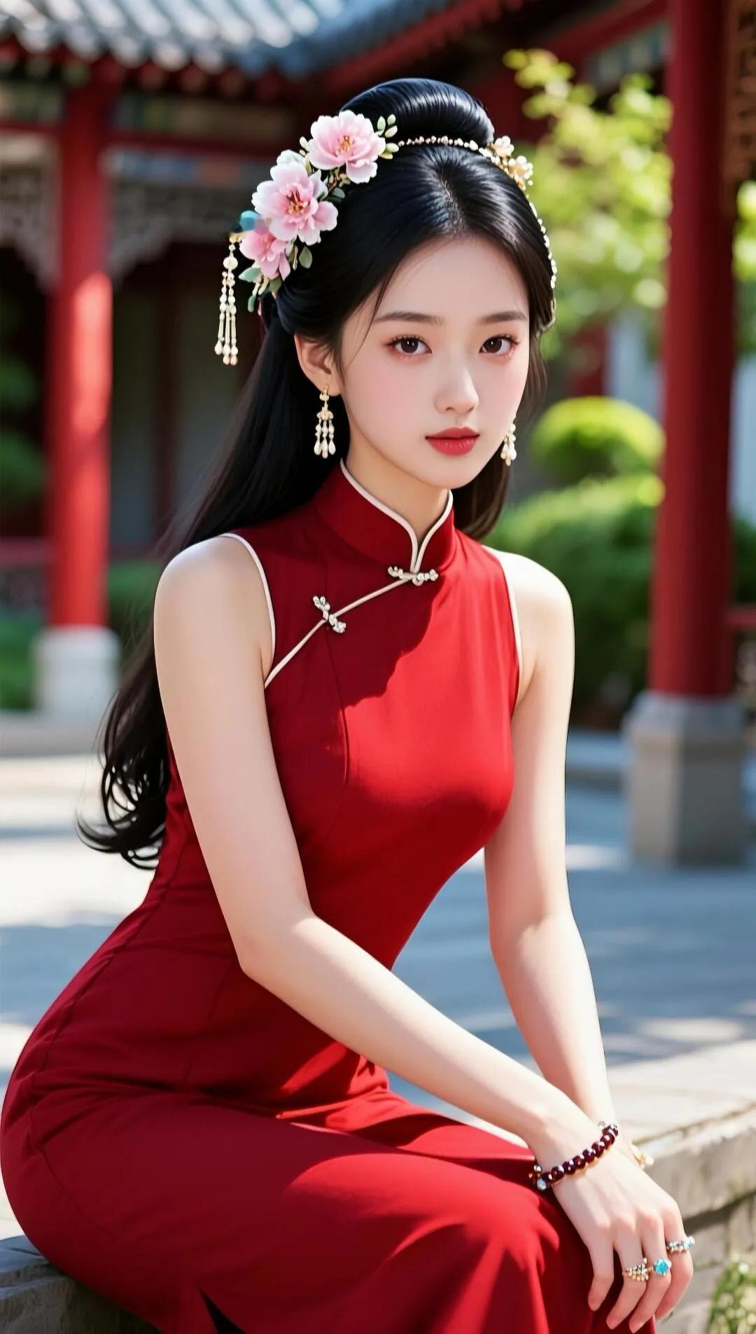 优雅旗袍,红妆惊艳,花枝招展,古典韵味