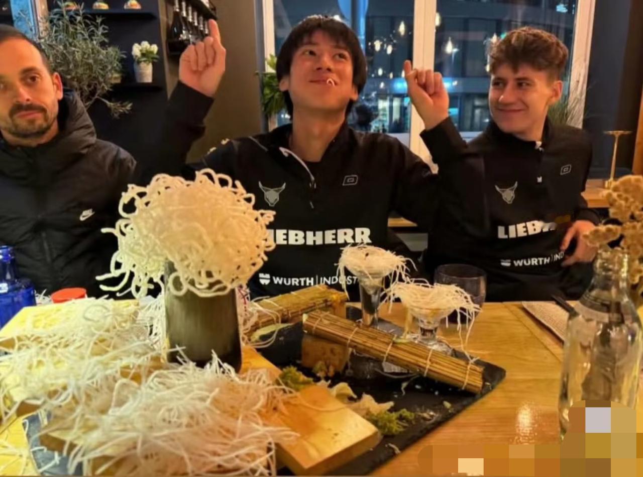 德国杯赛后 户上隼辅用寿司犒劳自己和队友 户上在德国杯半决赛上打得不错, 可惜第四盘遇到樊振东, 不过户上还是应该犒劳自己, 颤颤巍巍的奥克森豪森 能晋级四强就是靠户上 一单二分,和其他队友凑一分, 不过赛后采访, 户上隼辅还是非常实在的表示, 赛前研究了樊振东近期十多场比赛, 准备非常充分, 比赛中,所有的技战术 都发挥出来了, 能想到的办法都想到了, 能搏杀的, 不能搏杀的, 自己都做的很好, 到最后还是输了, 樊振东他还是太强…… 强者heng