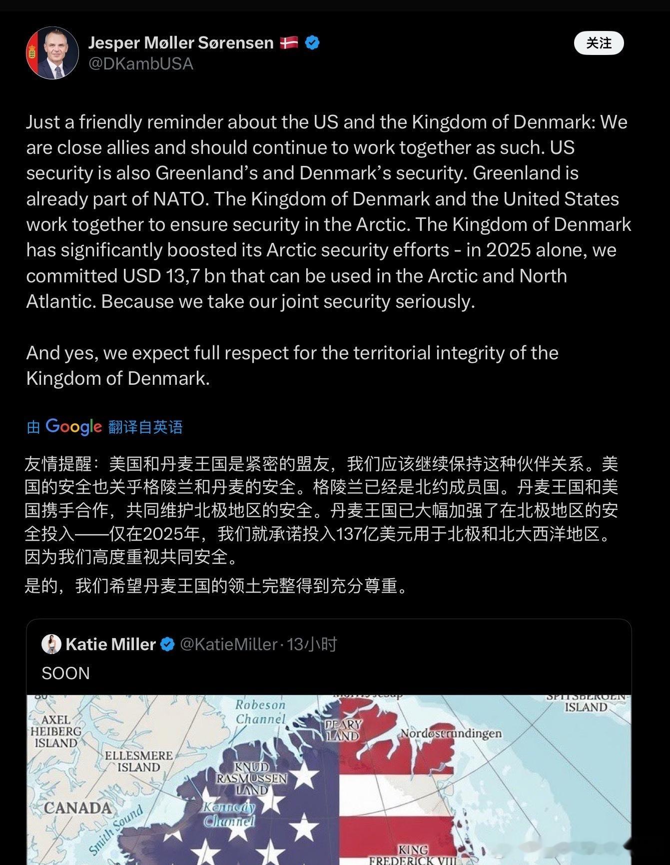 特朗普说绝对需要格陵兰岛你说的丹麦,是那个在疫情期间,《日德兰邮报》将中国国旗恶意篡改为病毒图案,而其首相以“言论自由”为由拒绝道歉的丹麦吗?你说的丹麦,是那个在美国网红公开扬言要“购买”格陵兰岛后,其驻美大使只能无奈回应“我们是盟友哇我们交了钱哇请尊重我们的领土完整好吗”,而丹麦网民则迷惑发问“我们一直追随美国参与各种行动为什么要收拾我们”的丹麦吗?