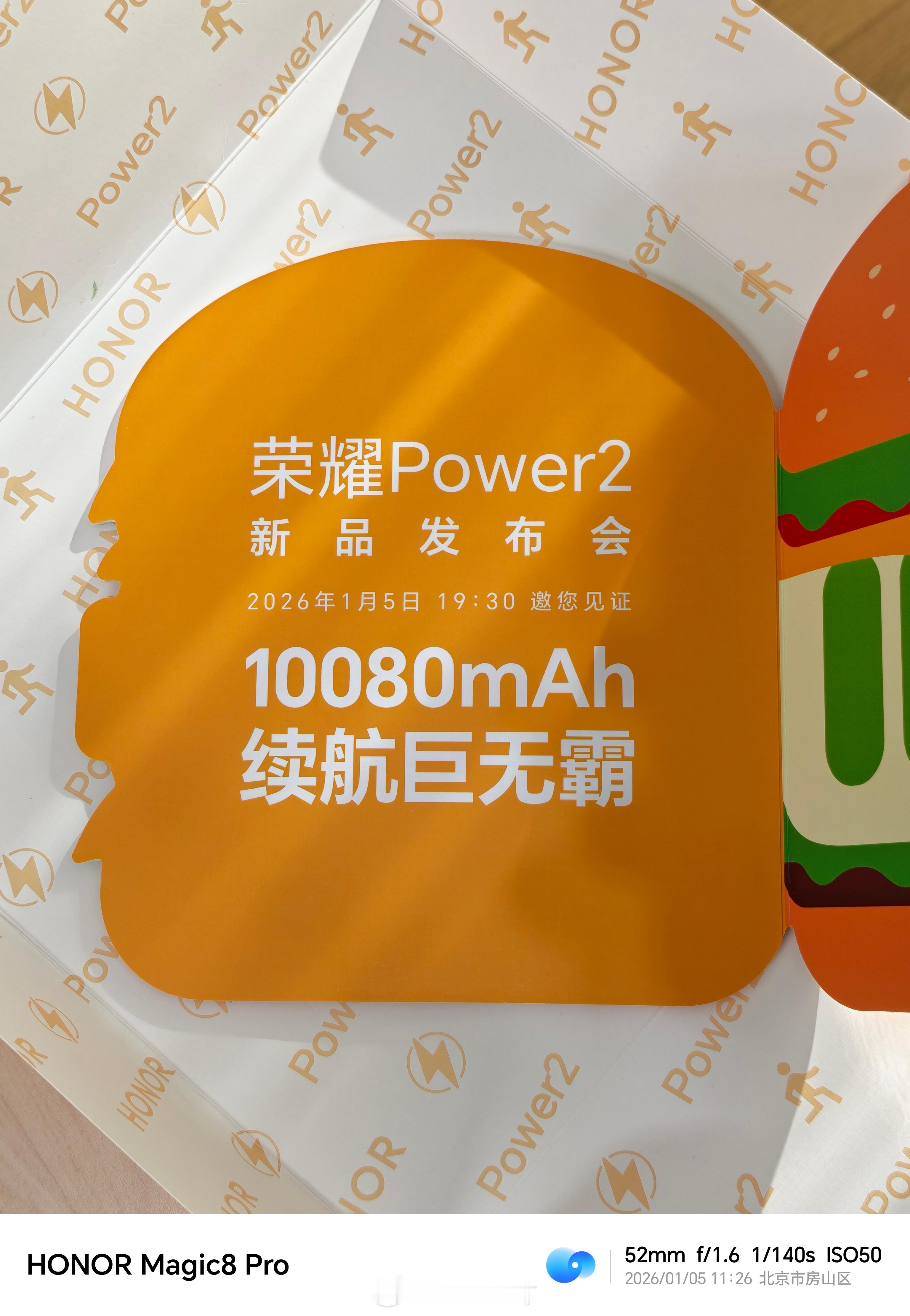 午饭时间到,给自己加个餐!吃个巨无霸。谁不喜欢大的呢?荣耀Power2今晚发布会,续航巨无霸,实力是真的强。电池这么大,体验这么好,用得爽,吃得香。荣耀的邀请函,太实用了,爱了爱了。荣耀Power2