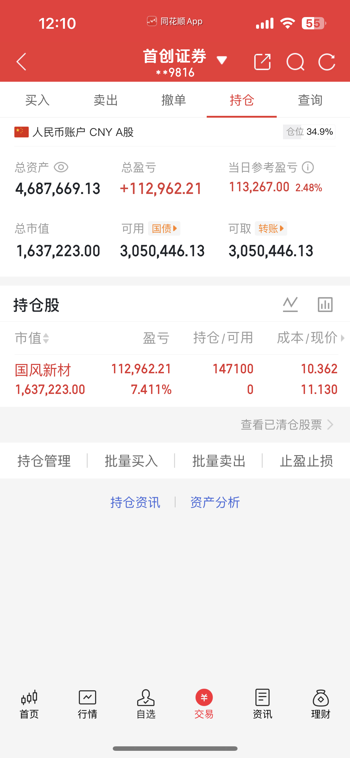 新年开仓$国风新材sz000859$强势涨停下午再进其它的!