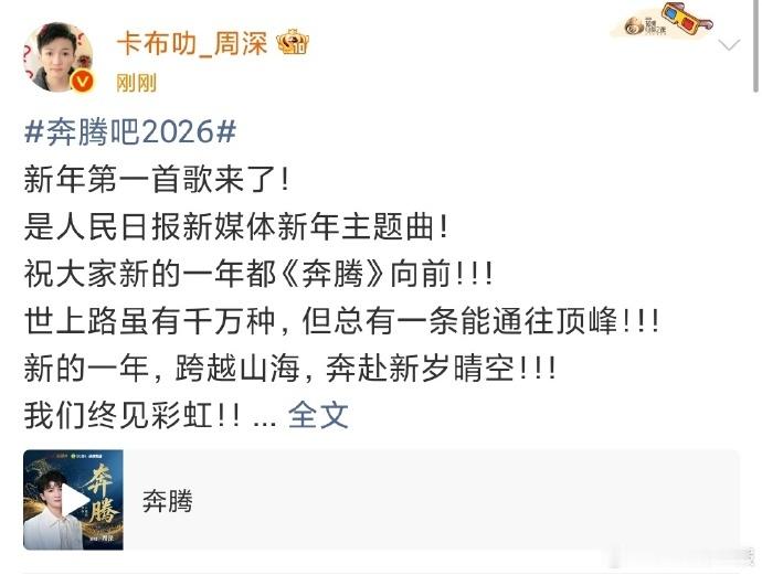 周深献唱新年第一首歌,旋律里满是崭新期许,他也祝所有听众新的一年都奔腾向前。周深新年第一首歌周深祝大家新的一年都奔腾向前