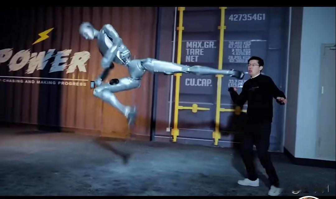 我的天呢, 你知道宇树H2人体机器人有多猛吗?少林寺武术散打全套,一个飞脚侧身踹过去,哎呀,王兴兴赶快撤步,小心让机器人踹到脸上,这飞脚速度堪比武当派冠军还要快,就连宇树科技领头人王兴兴陪练都需要躲着点,万一让机器人踹一脚也受不了,还是躲着点吧。 这个机器人急眼了,一个反脚腾空而起把西瓜踢得粉碎,落地时还是平稳,武术动作散打连贯,冲着中间两个大铁罐一脚踢飞,这武术是有师傅教的吧,也需要陪练很久,机器人需要陪练吗? 这速度太吓人了,是武当派的机器人,真是科技进步。
