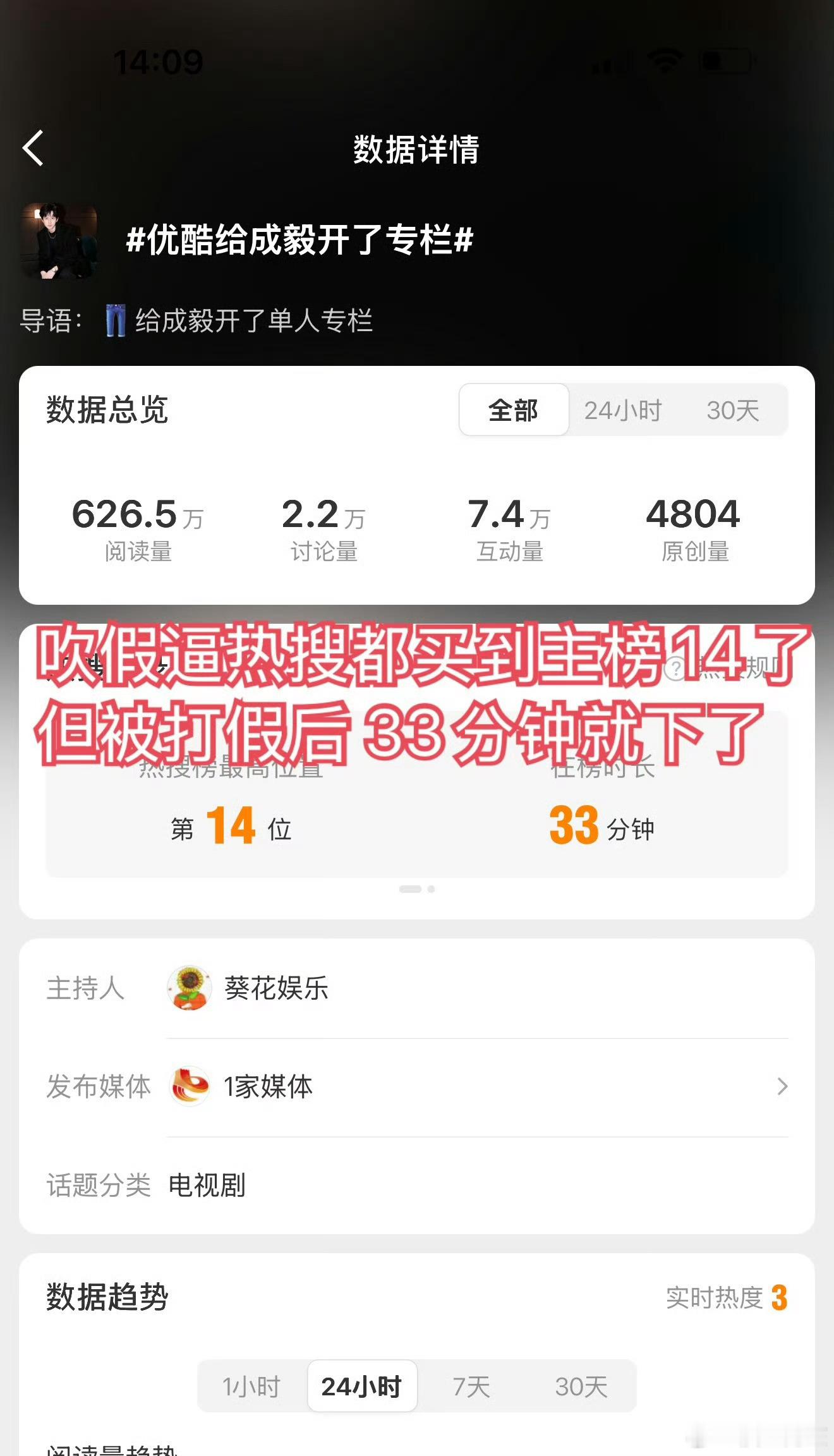 别说人家不好过吧!毕竟人家要啥数据都是官方的!哦!人家长安二十四计官方给我们做痛楼呢!怎么办呢?人家成毅就是扛剧呀!任何事都是先例!黑子绞尽脑汁跟不上人家的脚步呀!毕竟智商都不同频,看看你家大爆剧还得关联人家的词条蹭热度呢!还有N刷榜人家琉璃也是前十!优酷榜单就是有人家成毅专栏!可没看到你家大爆剧