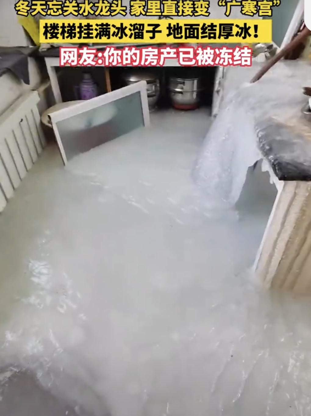 黑龙江哈尔滨有户人家最近可真是遭了殃。这家人全家外出办事,走得急,竟然忘了关水龙头。等他们在外面忙完,开开心心回家,一打开门,瞬间傻眼了——家里哪还是原来的模样,简直成了现实版的“广寒宫”! 只见屋里到处是厚厚的冰层,家具全被冰包裹得严严实实,沙发、桌子都成了“冰雕艺术品”。楼梯也未能幸免,一层冰把台阶盖住,走在上面滑溜溜的,稍不注意就得摔个屁股蹲儿。整个屋子冷得刺骨,就像掉进了冰窟窿。 这场景想想都让人觉得崩溃,好好的家变成这样,后续清理起来肯定麻烦得要命。不仅得花大量时间和精力把冰铲掉,那些被冰损坏的家具也不知道能不能修复,损失可不小。 其实类似这样因为粗心大意引发麻烦的事儿并不少见。很多时候,我们总觉得一些小细节没什么大不了,可往往就是这些小疏忽,会带来意想不到的大后果。 所以啊,咱们在日常生活中可得长点心,出门前一定要仔细检查家里的水电煤气等是否关闭。多一份细心,就能少一份麻烦,也能避免给自己和他人带来不必要的损失和困扰。 生活你会遇到哪些不开心的事,欢迎来评论区讨论。