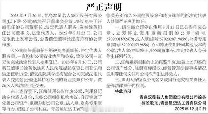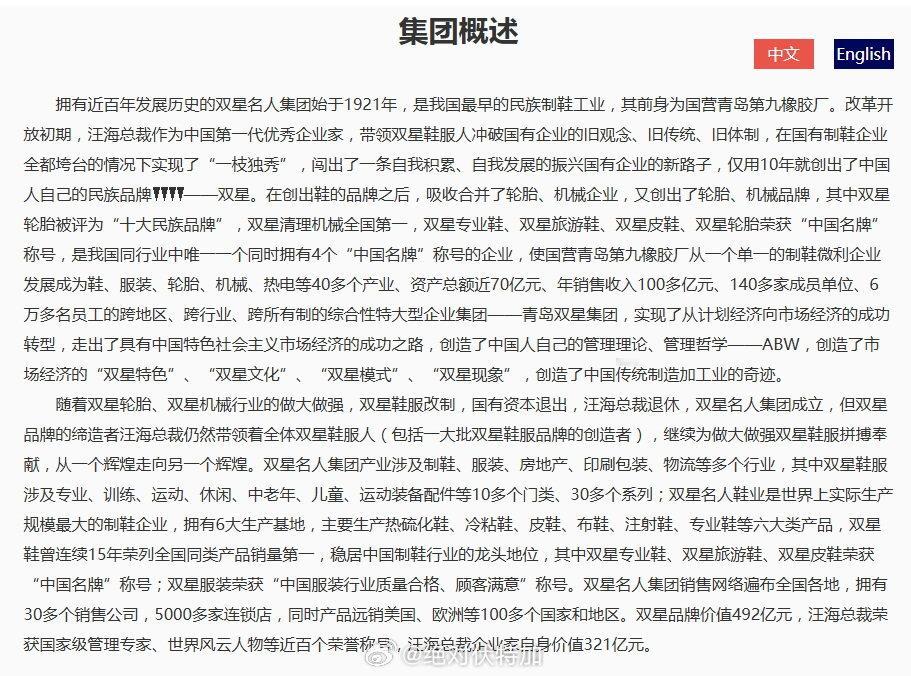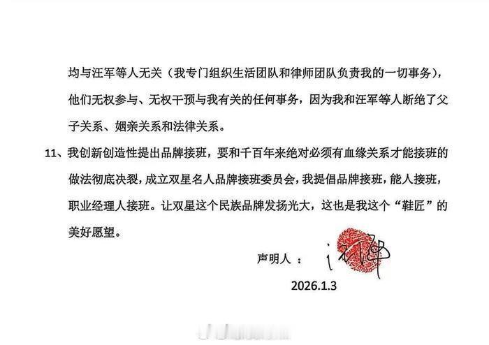 1月3日,84岁的运动鞋双星名人集团创始人汪海发布声明,正式宣布与儿子汪军、儿媳徐英断绝父子及姻亲关系。又是家族企业内部夺权戏码,不浪费时间看脉络了。而这次汪海公开声明第一条就是说儿子、儿媳不是中国人……双星的鞋么,倒是的确不分中外都借鉴的。知名企业家汪海与儿子断绝关系 汪海痛斥汪军美籍身份 双星名人