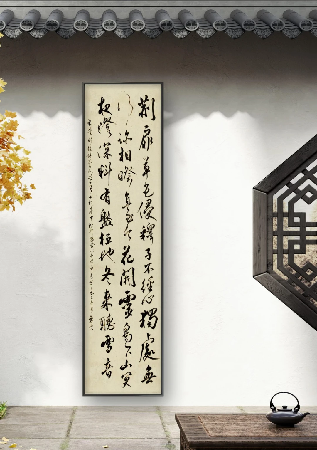 "明清调"是日本书法术语,指江户时代(相当于中国明清时期)传入日本的中国明清书风,尤其是受董其昌、文征明及晚明个性派(如王铎、傅山)影响的行草书风格,强调节奏感、墨色变化与个性表现,对日本近世书道影响深远。 荆扉草色侵,释子不经心。 独处无行迹,相睽直至今。 花开灵鸟下,山冥夜灯深。 料有盘桓地,冬来听雪音。 - 王铎 投语谷上人