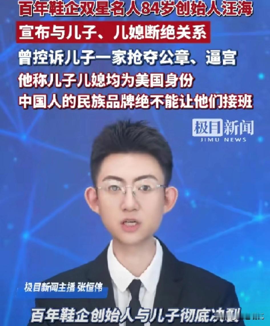 这绝对是人间清醒, 为了不让儿子继承企业,双星的老板与美国的儿子决裂,更多的细节曝光。 作为一个优秀的企业家,汪海是看不得自己的企业变成美国人控制,而自己的儿子竟然曾经抢夺公章,通过逼宫来企图强制接管这一百年企业。 真的不知道这是不是一个普遍的问题,有多少企业的公子选择了加入他国国籍,不知道现在的法律是怎么规定的,如果不是中国籍的子女还有资格继承中国企业吗,大家有知道的吗?