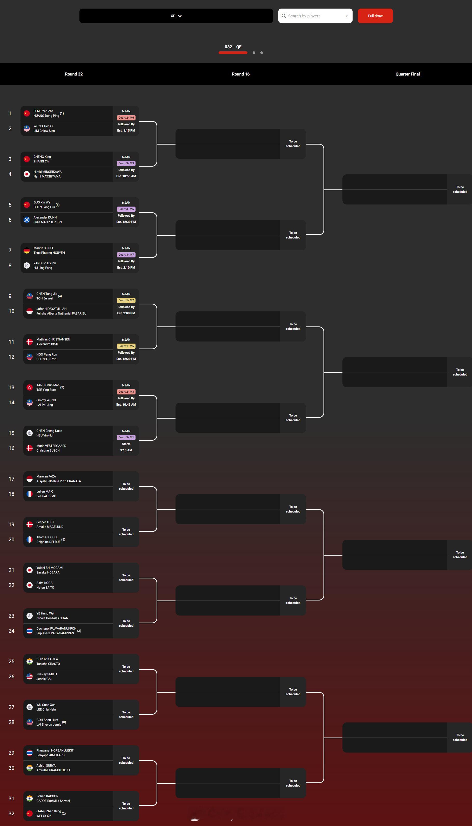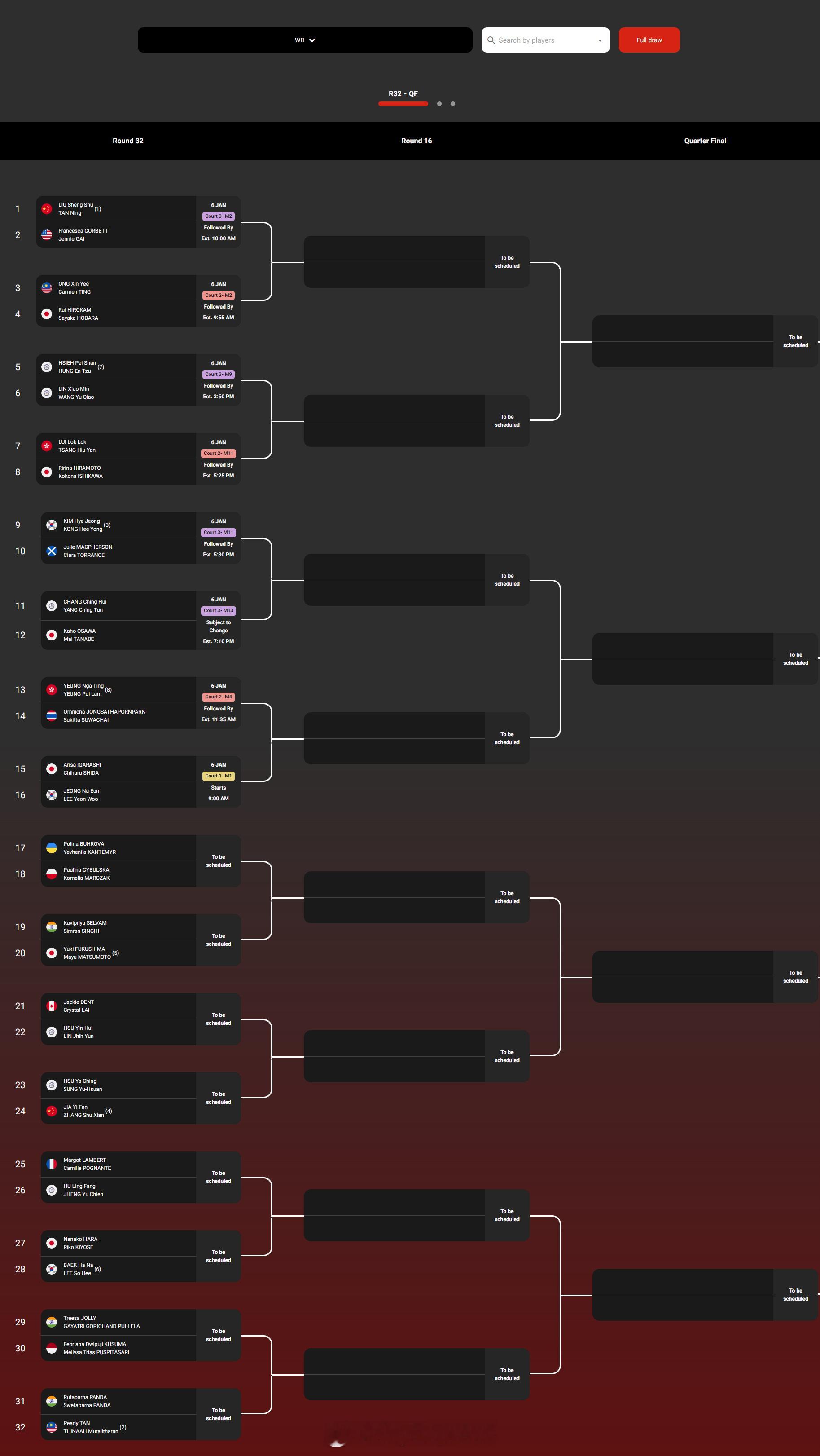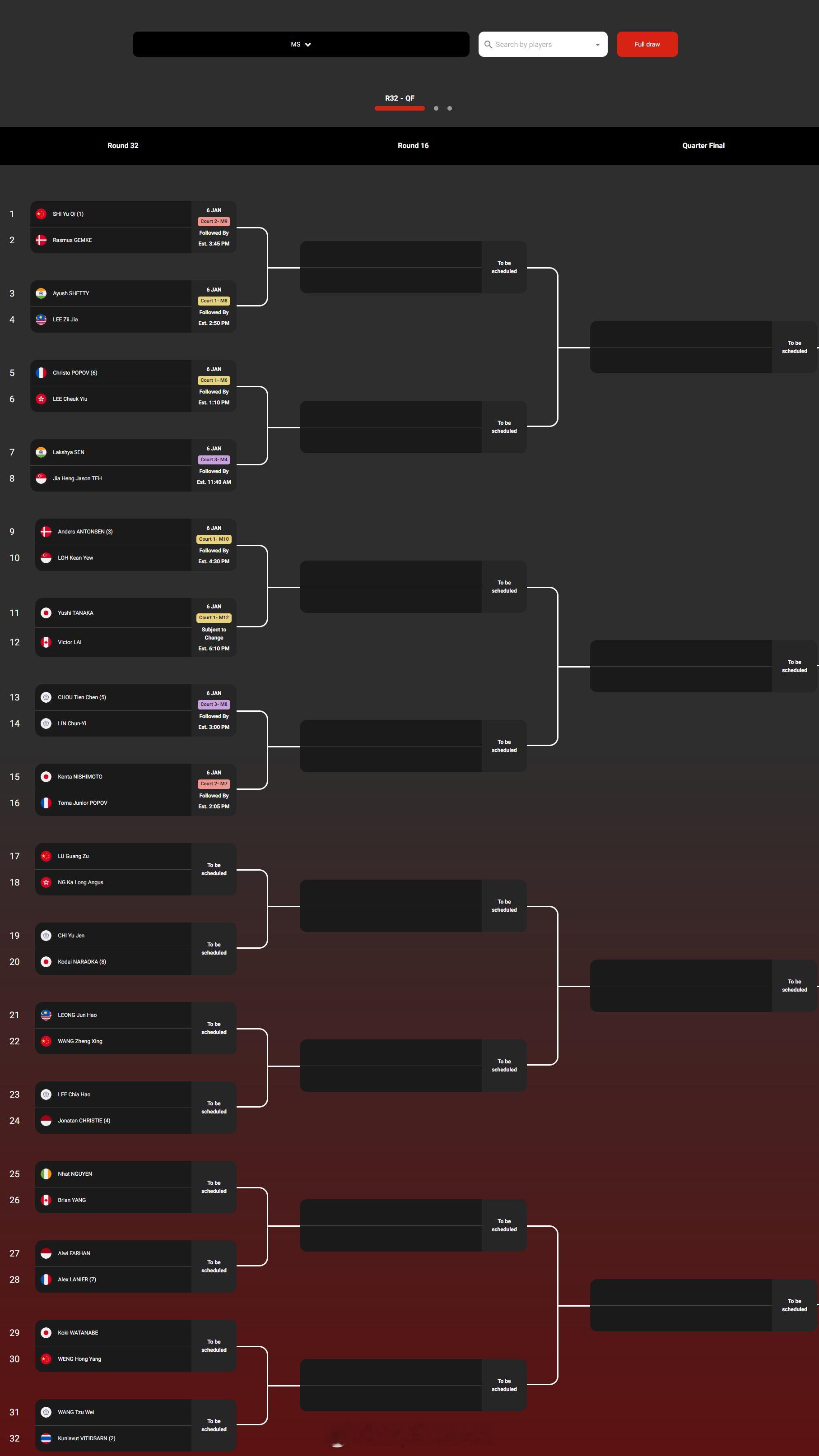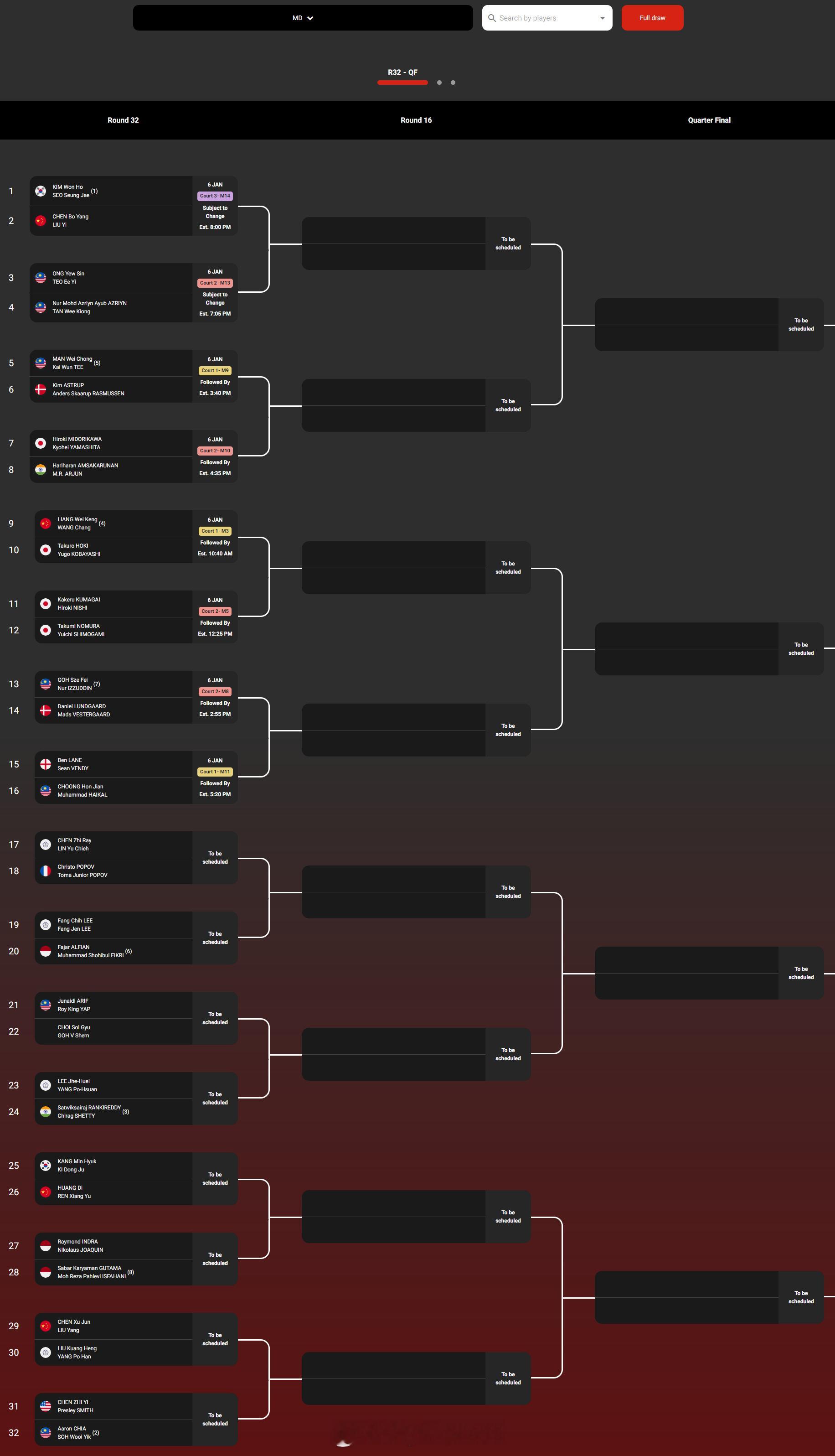 【2026马来西亚羽毛球公开赛签表】2026年马来西亚羽毛球公开赛羽联超级赛 1月6-11日,总奖金额为145万美元的2026世界羽联超级1000马来西亚公开赛将在吉隆坡举行。国羽参赛队员如下,签表见图:男单:石宇奇、陆光祖、翁泓阳、王正行女单:王祉怡、韩悦、陈雨菲、高昉洁男双:梁伟铿/王昶、陈柏阳/刘毅、陈旭君/刘阳、黄荻/任翔宇女双:刘圣书/谭宁、贾一凡/张殊贤混双:冯彦哲/黄东萍、蒋振邦/魏雅欣、郭新娃/陈芳卉、程星/张驰