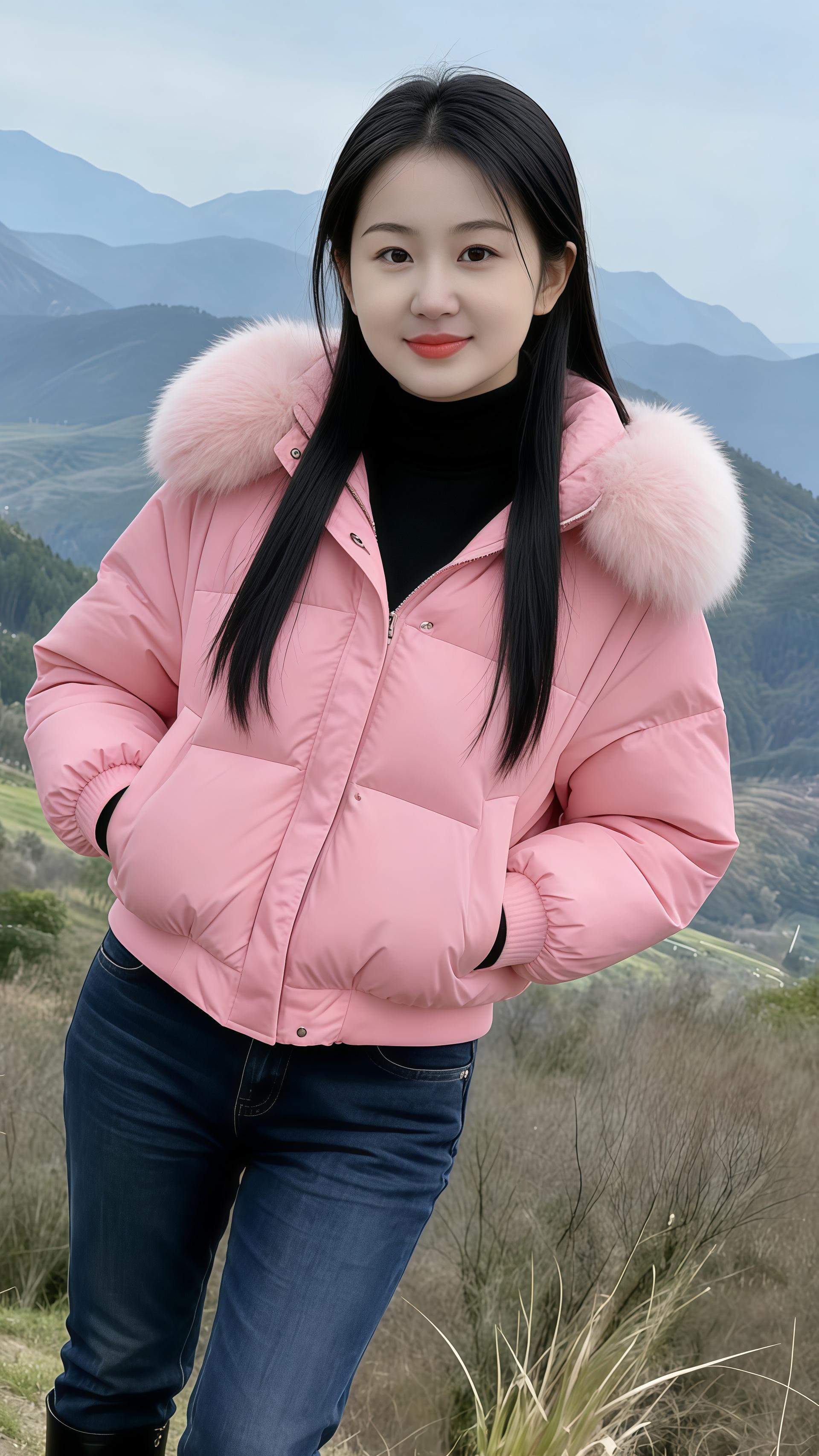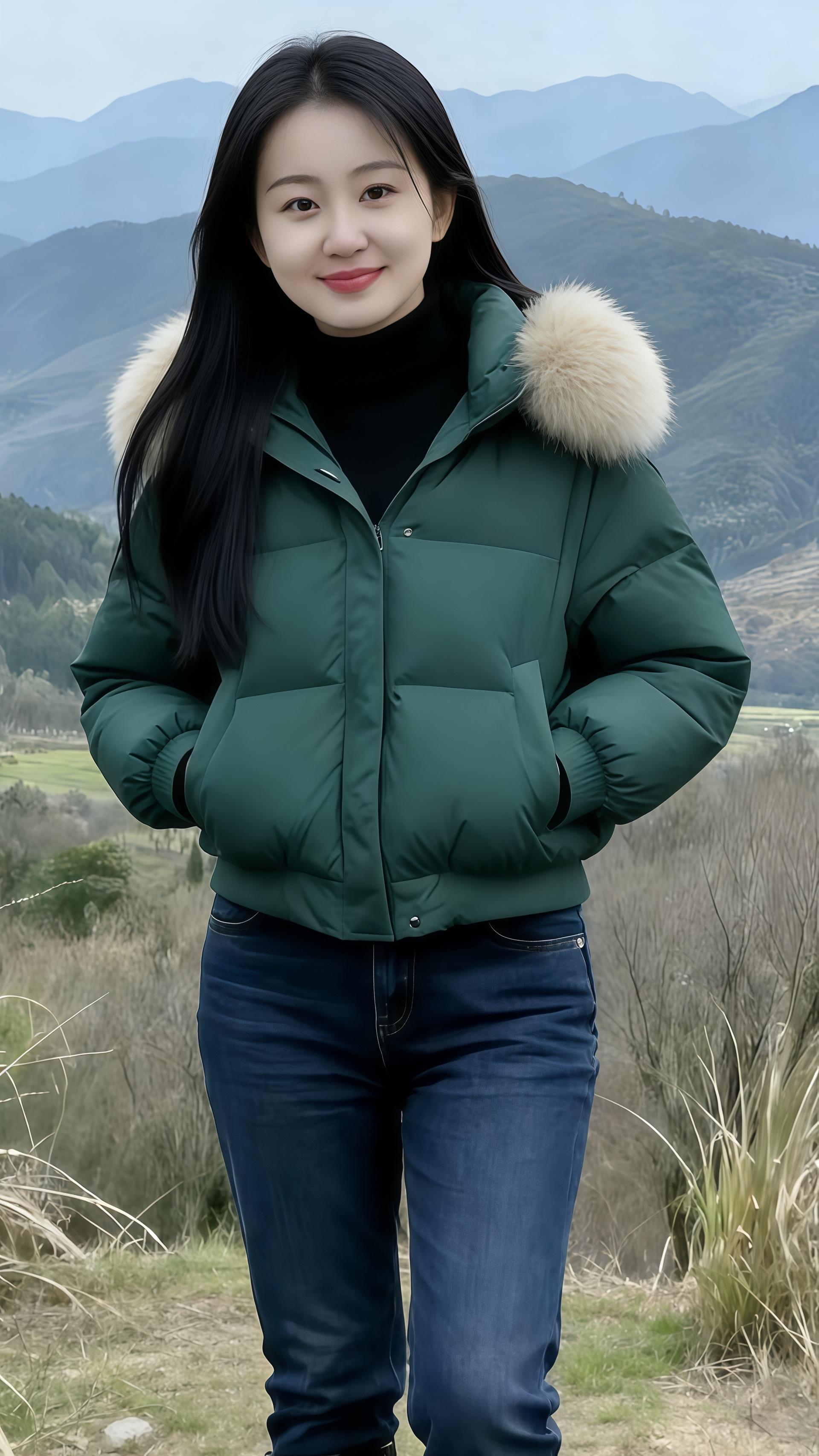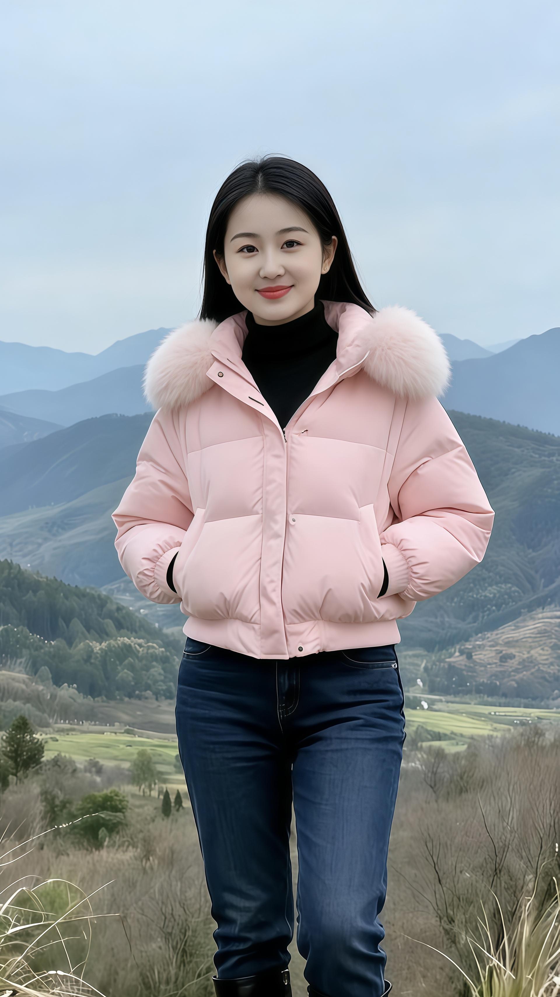 山野间山水风景秀丽自然美景美女