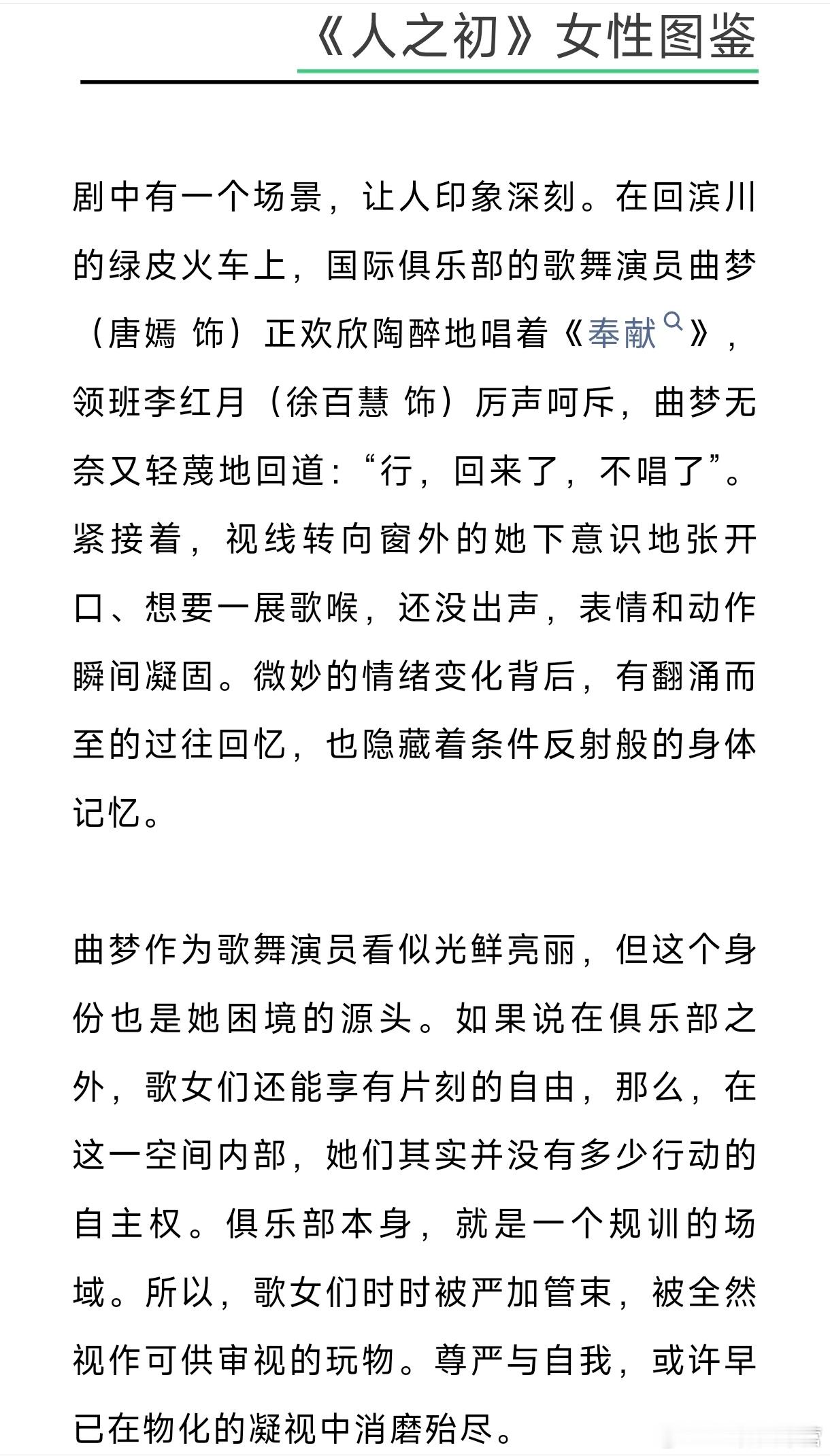 三联生活周刊——《人之初》的女性救赎力完全围绕着曲梦(唐嫣饰)展开的一篇剧评!唐嫣 曲梦我演爽了人之初