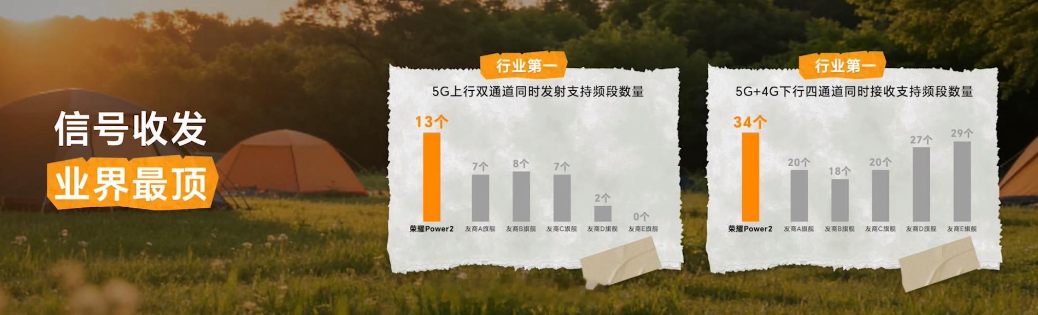 荣耀 Power2 信号岛,鸿燕六翼天线系统, C1+ 射频增强芯片,支持 13 个 5G 频段,通信这块耀子确实强。
