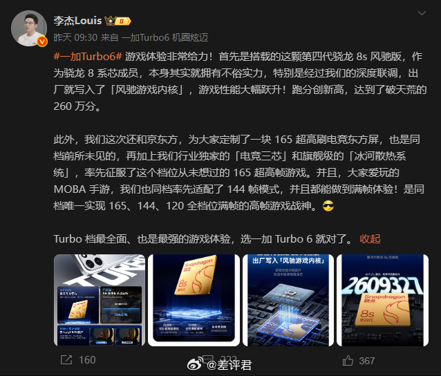 #差评说数码# 一加和红米真是老冤家了,今年开局就是两家 Turbo 正面碰上。。。一加 Turbo 6 是骁龙 8s Gen4 + 9000mAh,继续讲 165Hz;红米则是搞了个 Turbo Max,首发天玑 9500s(性能对面骁龙 8e)。不过就跟我之前说的那样,荣耀 WIN 系列在之前给中端性能机打了个样,后面的同类手机很难避免被对比。我猜这俩手机都会在各方面去对标荣耀,彼此的火药味估计不会这么浓,你看红米 Turbo 5 这海报的倒影直接就是一个“WIN”,意图已经非常明显了