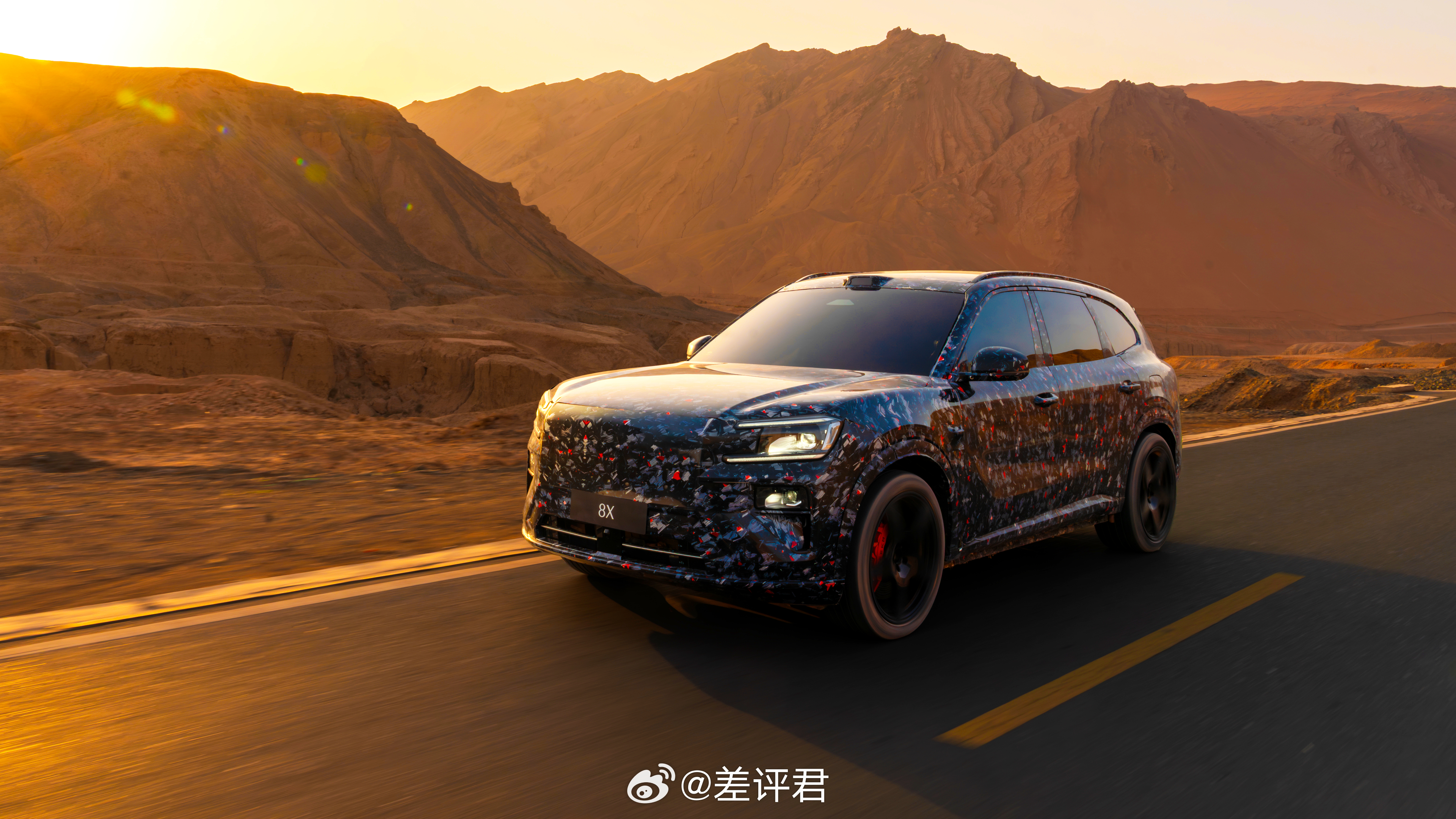 #差评说车# 极氪8X今天终于露脸了,2026年最期待的一台车之一。我上个月吉利那边也详细看了外观,知道了具体配置,但因为配置可能后面会改,所以就暂时保密。首先这台车吉利内部其实很纠结名字,因为从配置和堆料来说,它其实更像是9X的运动版,就像是揽胜行政和揽胜运动的区别,所以纠结是不是可以起名叫9S?但是官方定名8X就意义明确了,一定会在堆料猛的基础上,给一个非常诚意的价格。再说外观,虽然贴着伪装,但是这个体态已经很明显了。看C柱那里的三角窗,也能看出来这是一款运动越野户外风格的定位,有点像 X5M。个人期待哈,极氪能出个那种户外越野套件的版本,8X估计会继承9X三电机的动力配置,如果只是城区里开开,有点可惜这么大马力。。。 #极氪8X
