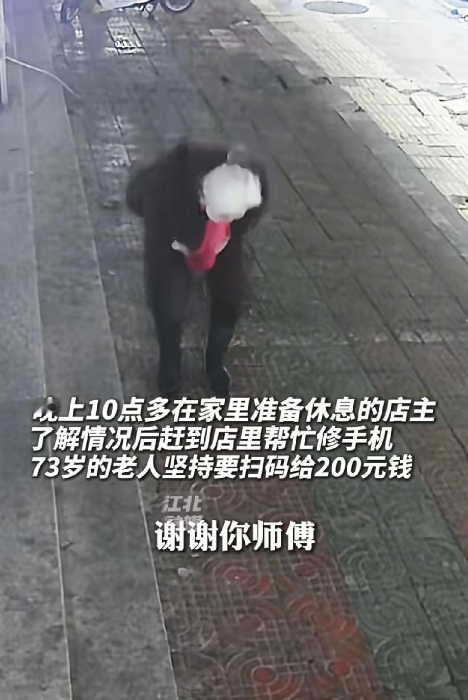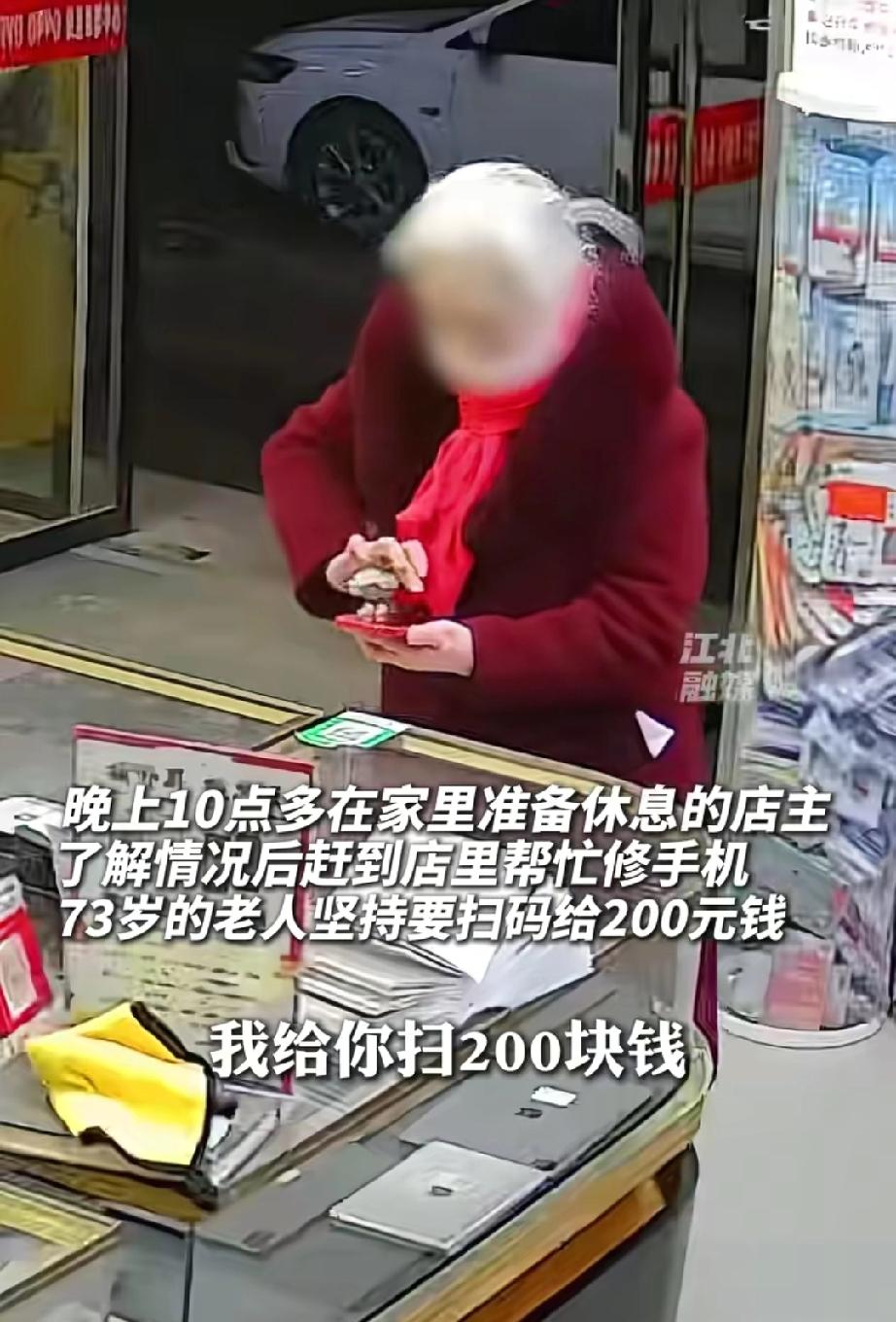 泪目!江苏徐州,深夜10点,街头店铺大多紧闭。73岁的白发奶奶却站在一家手机店门口,急得掉泪。她19岁的孙子有癫痫,只因手机掉水里坏了,受刺激犯病住进了医院。 奶奶哭着给手机店店主打电话求助,本想拒绝的店主,听完她的哭诉,二话不说打车赶来修手机。老人坚持要付200元维修费,店主修好后想退钱,老人却执意不肯,还多次鞠躬致谢。 咱们要是想想自家奶奶,为了咱们大晚上到处求人,得多揪心。这位徐州奶奶的孙子有癫痫,就因为手机掉水里坏了,孩子受刺激犯了病。她不懂啥医学道理,就觉得修好手机,孙子的病就能好,这是她能抓住的唯一希望。 大晚上的,别家手机店都关门了,她凭着之前的记忆找到这家店,翻出店主的手机号,哭着打电话:“老板,求求你……我孙子在医院犯病了……手机掉水里了,修不好他好不了啊……” 她的声音里满是绝望和着急,手都在抖,眼泪止不住地流。那一刻,她不是什么顾客,就是一个想为病床上的孙子抓住“救命稻草”的普通奶奶。 店主本来可以拒绝,毕竟大晚上的谁不想休息。但老人的哭声,一下子戳中了他心里最软的地方。商业规则和良心在他心里打架,最后他选择了打车赶回店里帮忙。这个决定,就像在寒夜里点亮了一束暖光。 店主到了之后,奶奶立刻鞠躬感谢,还把帽子摘了。这份礼貌和素养,真的让人心里一暖。 评论区都被暖到了: “这奶奶太明事理了,又有教养,店主也太善良了,看得我眼泪直流!” 还有人说:“这就是人间温暖啊,奶奶的爱和店主的善,让我觉得生活还有盼头!” 奶奶对孙子的爱是笨拙的,却也是最真挚的;店主的善良是不求回报的,却照亮了寒夜。就像咱们身边,总有这样的人和事,在不经意间温暖着我们,让咱们觉得再难的日子,也有温柔的光。 奶奶不懂医学,她的想法在咱们看来可能“不科学”,但那份着急为亲人做点什么的心情,那种在压力下抓住任何希望的执着,是最原始最纯粹的爱。这份爱,因为笨拙,反而更让人感动。 奶奶没有把别人的帮助当成理所当然。她鞠躬、摘帽、坚持付钱,用最真诚的方式守护自己的尊严,也表达了对他人善意的尊重。 店主则是“将心比心”,在自己能力范围内帮了忙。他们之间没有道德绑架,没有谁高谁低,只有善意的流动和互相的尊重。 希望奶奶的孙子能快快好起来,也希望这份温暖能一直传递下去。 咱们每个人,在力所能及的时候,都可以成为那个“打车赶回”的人;在需要帮助的时候,也可以成为像奶奶一样体面、懂得感恩的人。 世界的温度,就藏在这些普通人的善意里。愿我们都能被这份温暖治愈,也能成为温暖别人的光。 孙子因手机损坏犯癫痫 奶奶哭求维修
