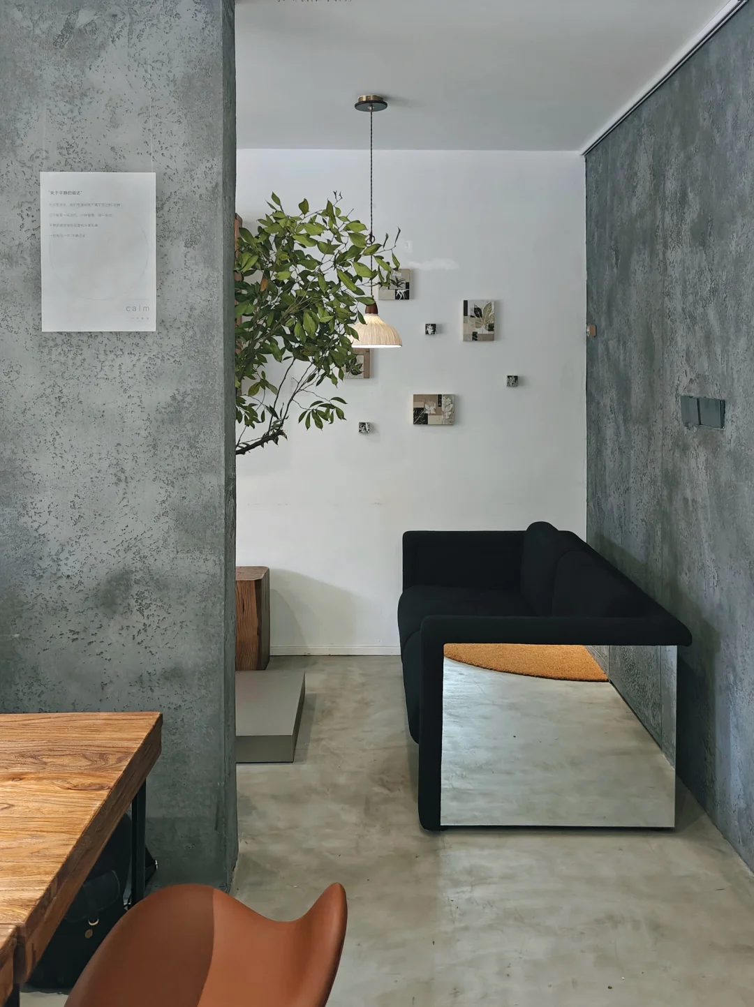 空间主人本身从业室内设计,以“遵循自然、野蛮生长”为核心理念改造老房子,打造了这一处安静带院、能承载艺术创作与交流的空间。水泥、木头、玻璃等主材平衡空间轻重冷暖,用高透明感颜色铺垫以凸显艺术品。很喜欢半弧形区域一整块大玻璃窗外的松树景致,有种“疏松影落空坛静”的氛围。