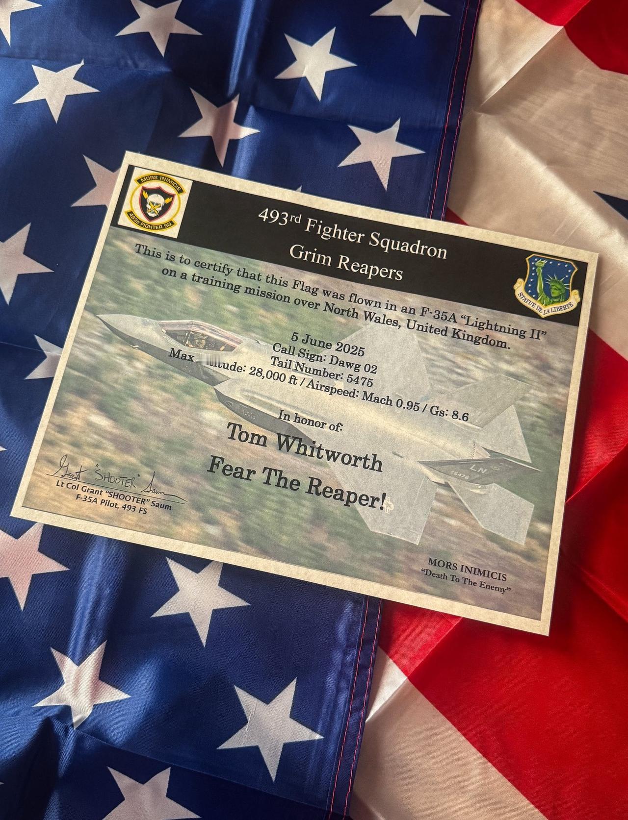 Tom Whitworth受邀参加莱肯希思基地493rd ‘Grim Reapers’ 中队指挥权变更仪式