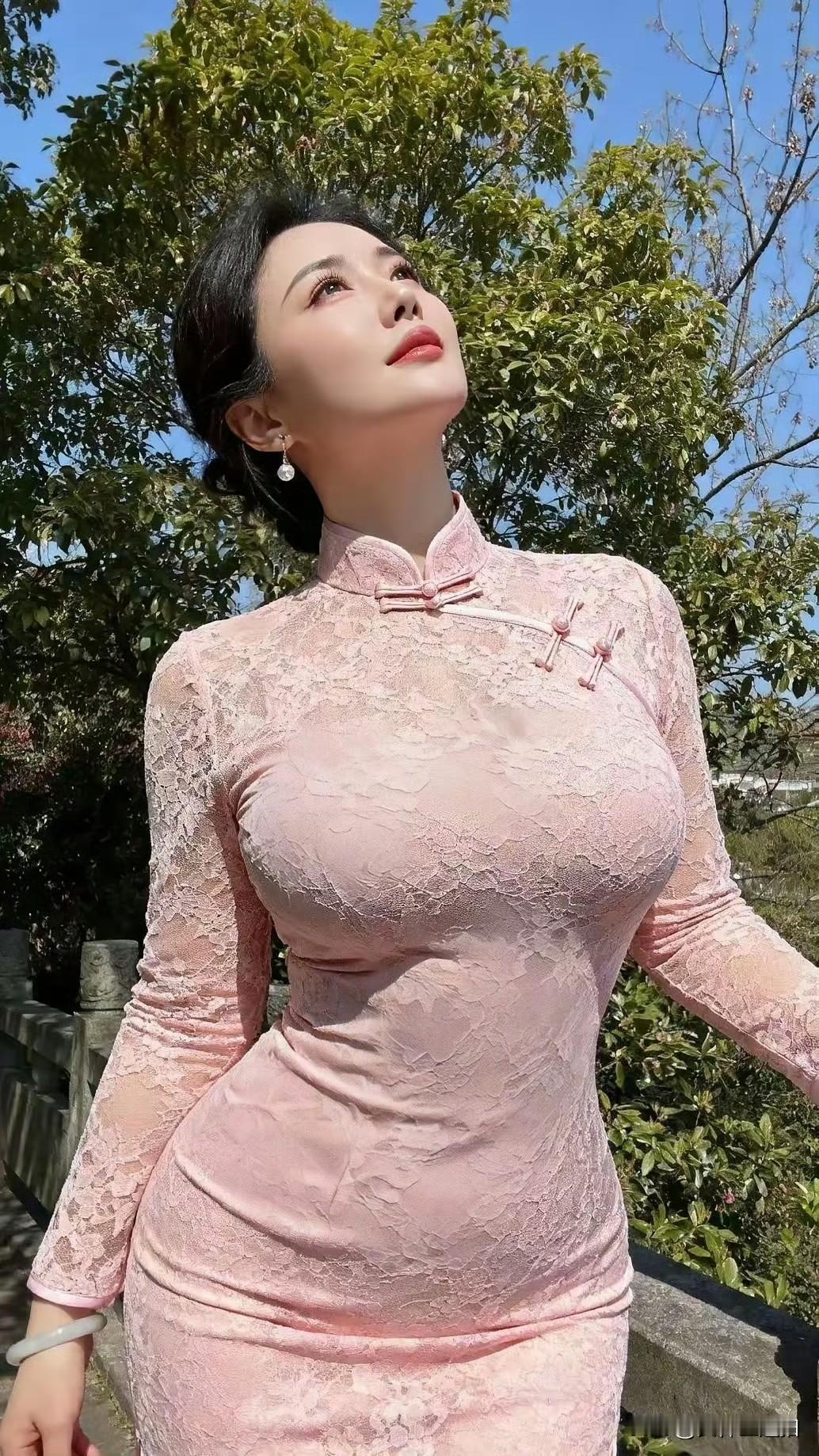 优雅气质,粉嫩蕾丝旗袍,夏日清新穿搭
