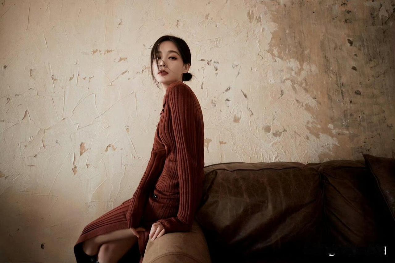复古风穿搭,红衣少女倚靠在老墙边,尽显优雅与神秘。