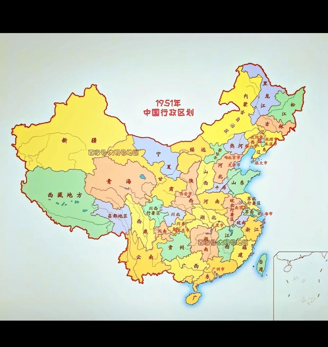 这是1951年,中国地域划分的! 你看看和现在有什么区别?[大笑] 老地图 历史地图 地图会说话