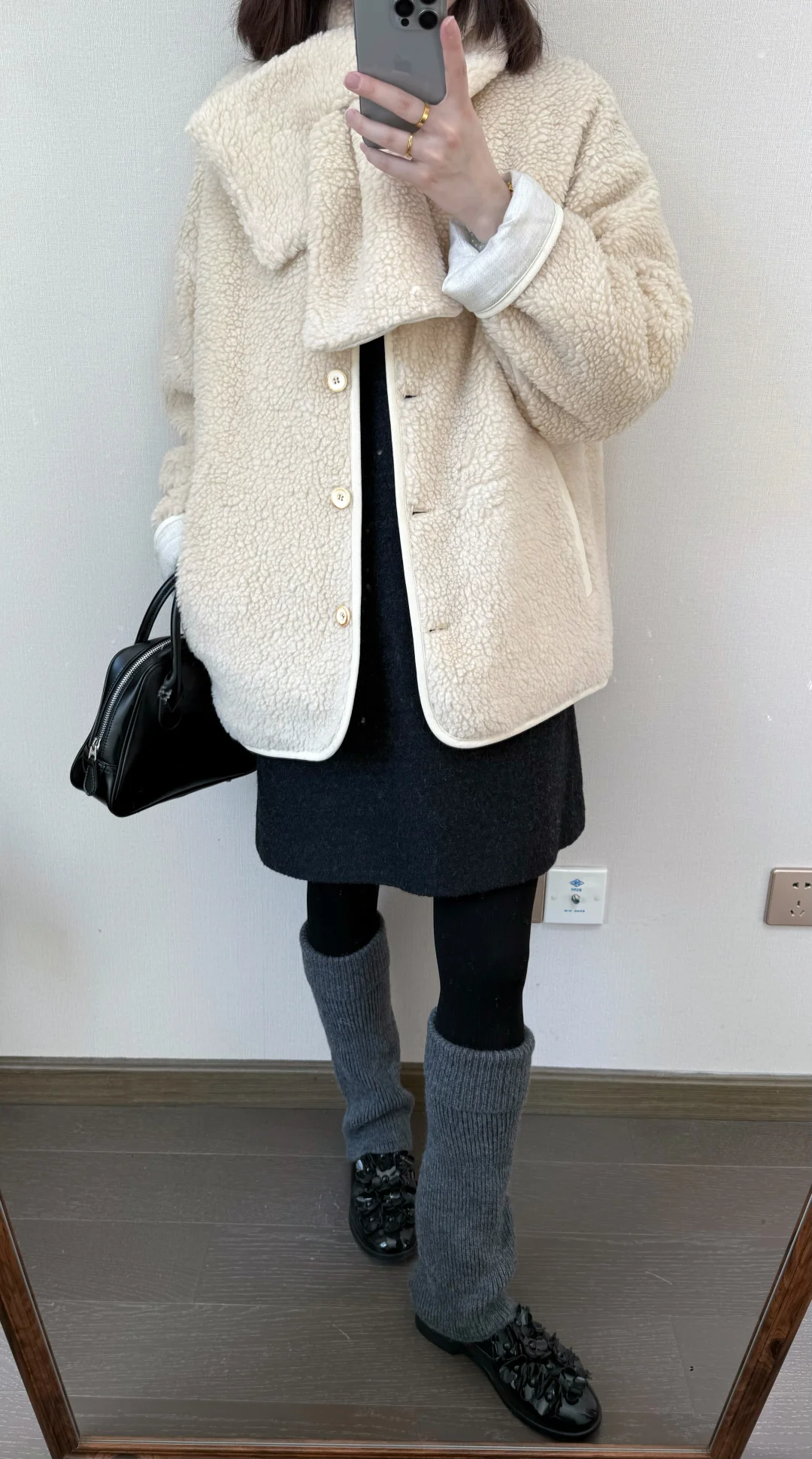 cleanfit简单出门 极简穿搭 通勤穿搭 羊羔毛外套 冬天与羊羔毛的适配度 秋冬穿搭 过年穿什么 大衣