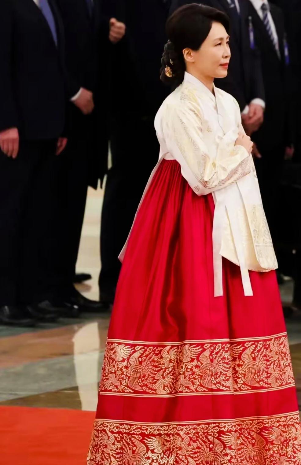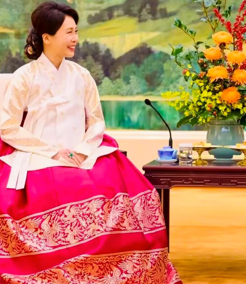 李在明夫人金惠景身着韩服端庄大方,气质优雅啊! 金惠景穿着传统的韩式服装,既提升了自己的形象,又展现了传统的服饰文化! 红色为主色调,加上金惠景美丽的笑容,让人看上去特别的端庄!