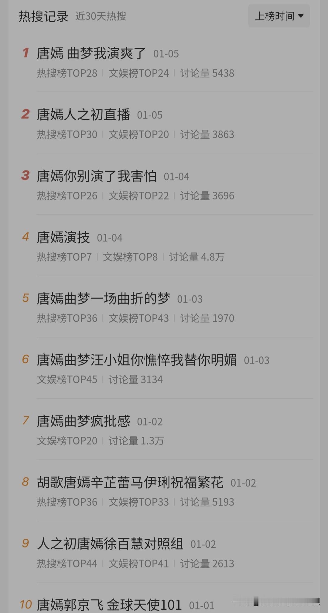 「人之初」因为太扑街,男女主已经放弃宣传了。 唯独四番特别主演的唐嫣还在疯狂地大营销。 张若昀26年截至目前,只买了2个热搜,有一个还是和马思纯共创的。 而女二唐嫣却接连买了十几个热搜,全方位称赞她的角色和演技。 也能理解,「独身女人」近期内播不了了,人之初播完,🍬今年估计又要空档一年了, 所以她才会这么努力的买热搜宣传,为明年的白玉兰最佳女主做营销铺垫! 只是,这么扑街的剧,她又是个特主,真的有希望拿奖吗? 而且,秦雯事件后,白玉兰还有公信力吗?