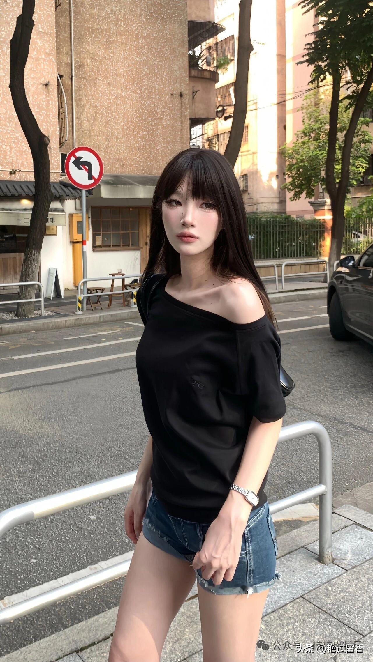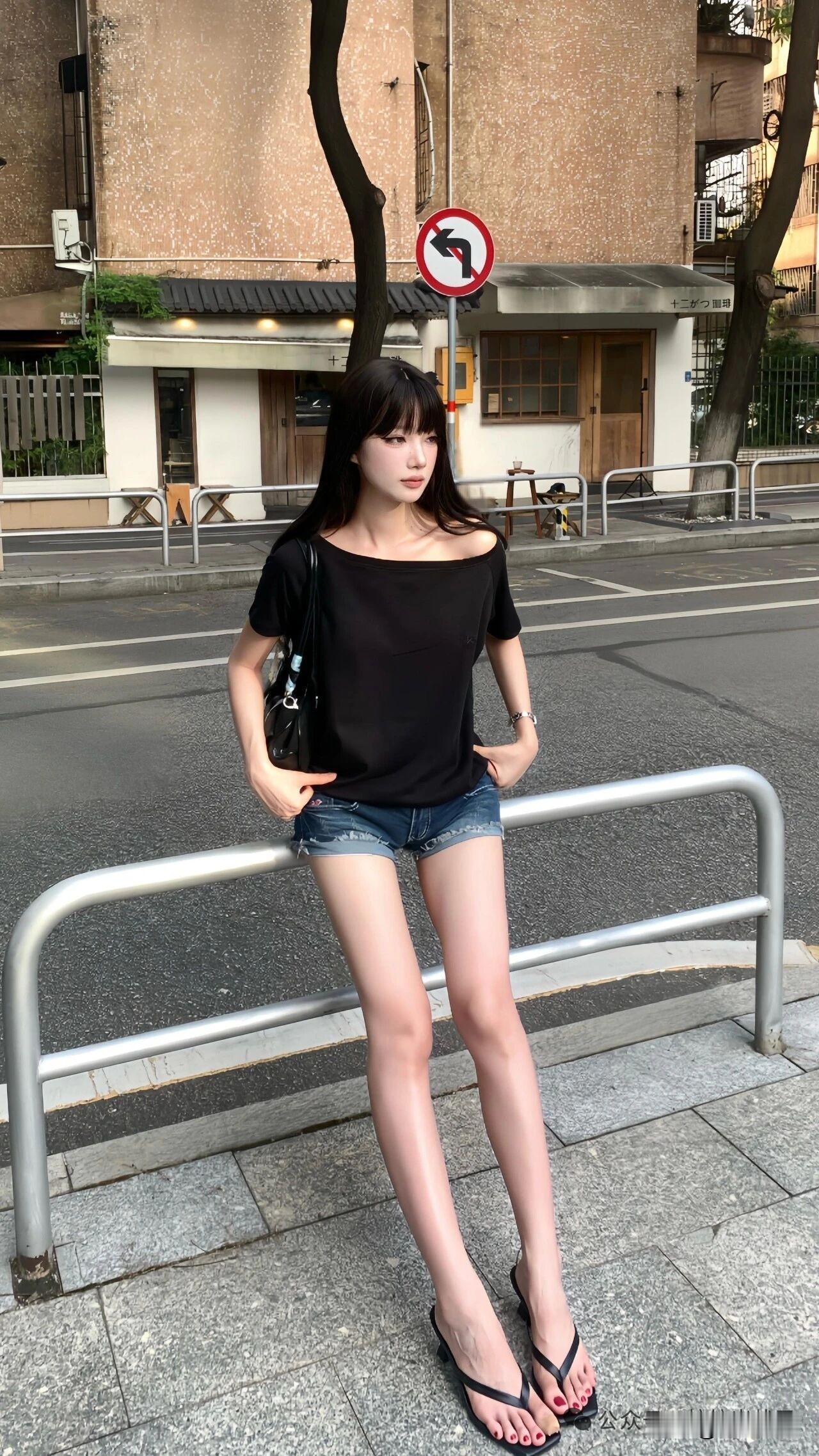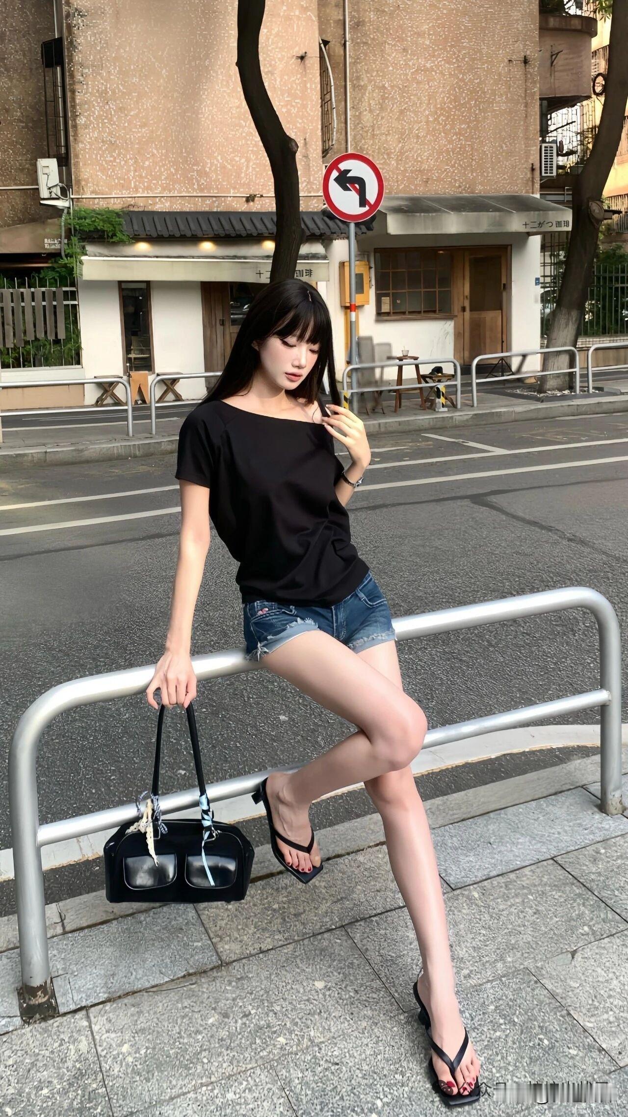夏日清凉穿搭,黑色上衣+牛仔短裤,轻松自在!🌞👗👠