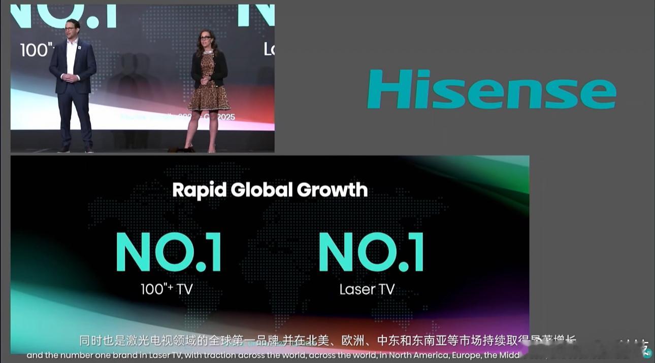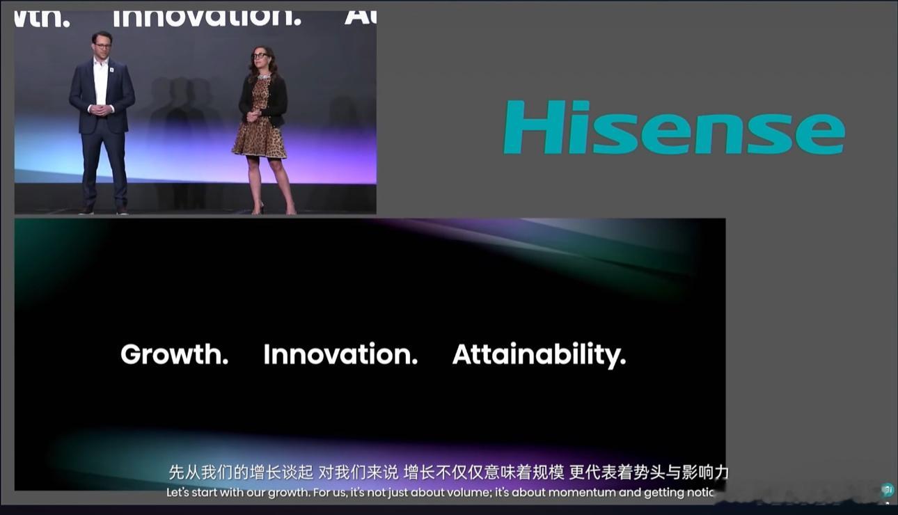 CES2026今天,海信发布全球首款 RGB-Mini LED,实现电视百年彩色背光技术首次量产!在技术上,海信发布全新一代RGB-Mini LED,光源、芯片、色彩管理全链跃升,引领电视显示技术不可阻挡的进化浪潮! 重点能够看到海信的全球发展速度,确实点赞!